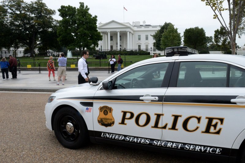 Сотрудники команды экстренного реагирования Секретной службы задерживают проникшего на территорию Белого дома нарушителя.