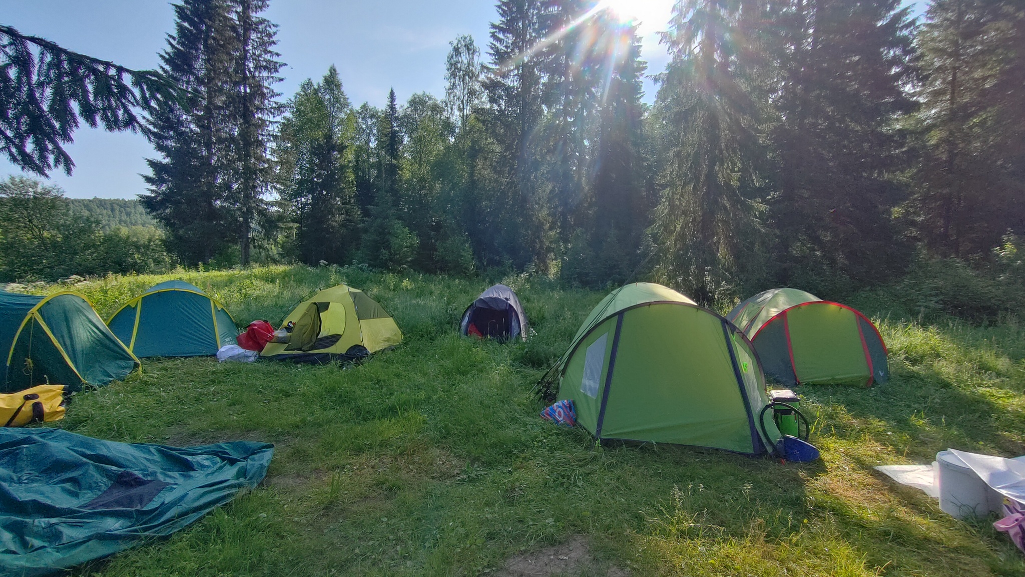 Так как уже вечерело, мы стали искать стоянку. После очередного поворота реки мы увидели подходящее место с крутым подъемом на опушку леса. В плане рыбалки оно было также перспективным, так как поворот образовывал отличное обратное течение вдоль берега с хорошей глубиной. Поставив палатки в тени деревьев, мы приступили к разогреву на ужин утреннего плова.