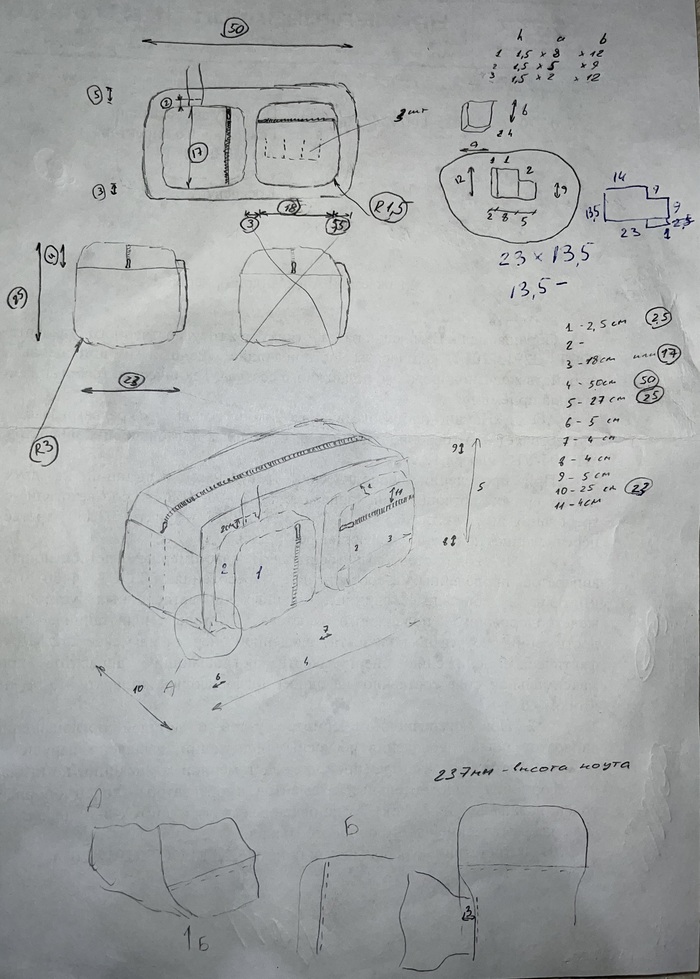 И уже набросал понятный одному мне эскиз. На этот раз будет с плечевым ремнем.