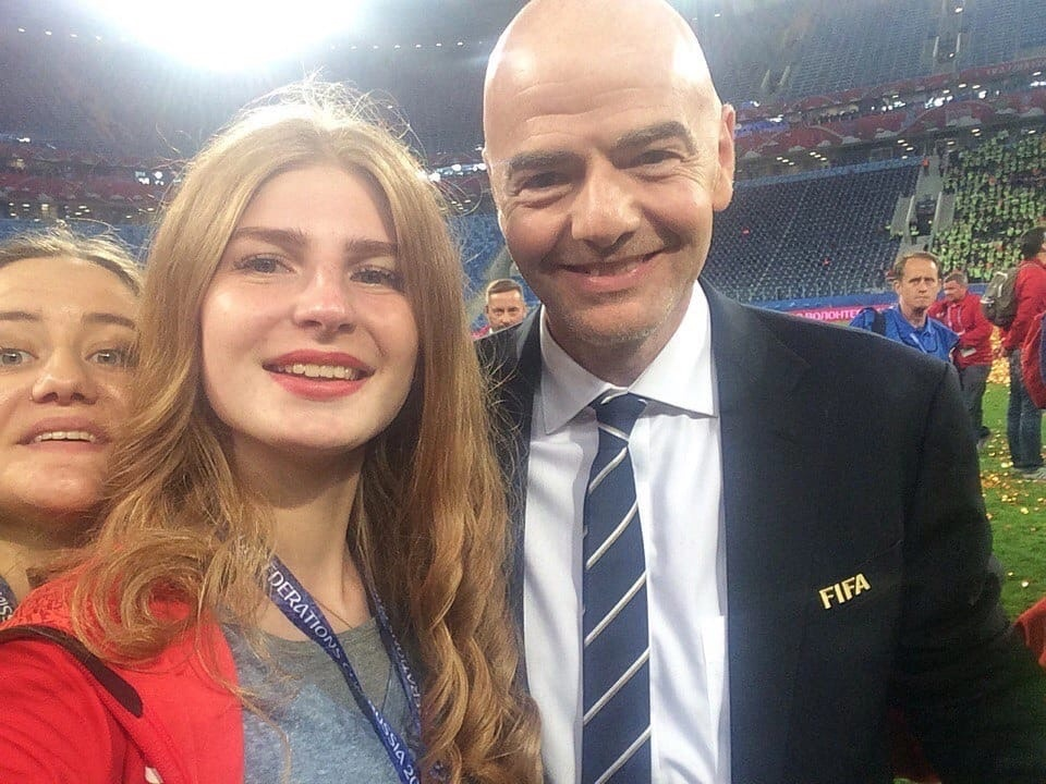 Во время волонтёрства на Кубке Конфедераций 2017 в Санкт-Петербурге я была сотрудником функции «Сервисы для зрителей». Там встречала делегации иностранных болельщиков, и также устно переводила во время их движения по стадиону. На заключительной церемонии для волонтеров удалось сфотографироваться с Джанни Инфантино (президент FIFA), он произнёс трогательную речь о важности волонтёрского движения для футбольного мира. Также запомнился момент приезда сборной Португалии. Было очень много португальских болельщиков, на стадионе тогда было очень шумно. И, конечно, мы с волонтерской командой ждали приезда Криштиану Роналду в составе сборной. Краем глаза удалось на него посмотреть, когда команда выходила из автобуса и шла к раздевалкам.