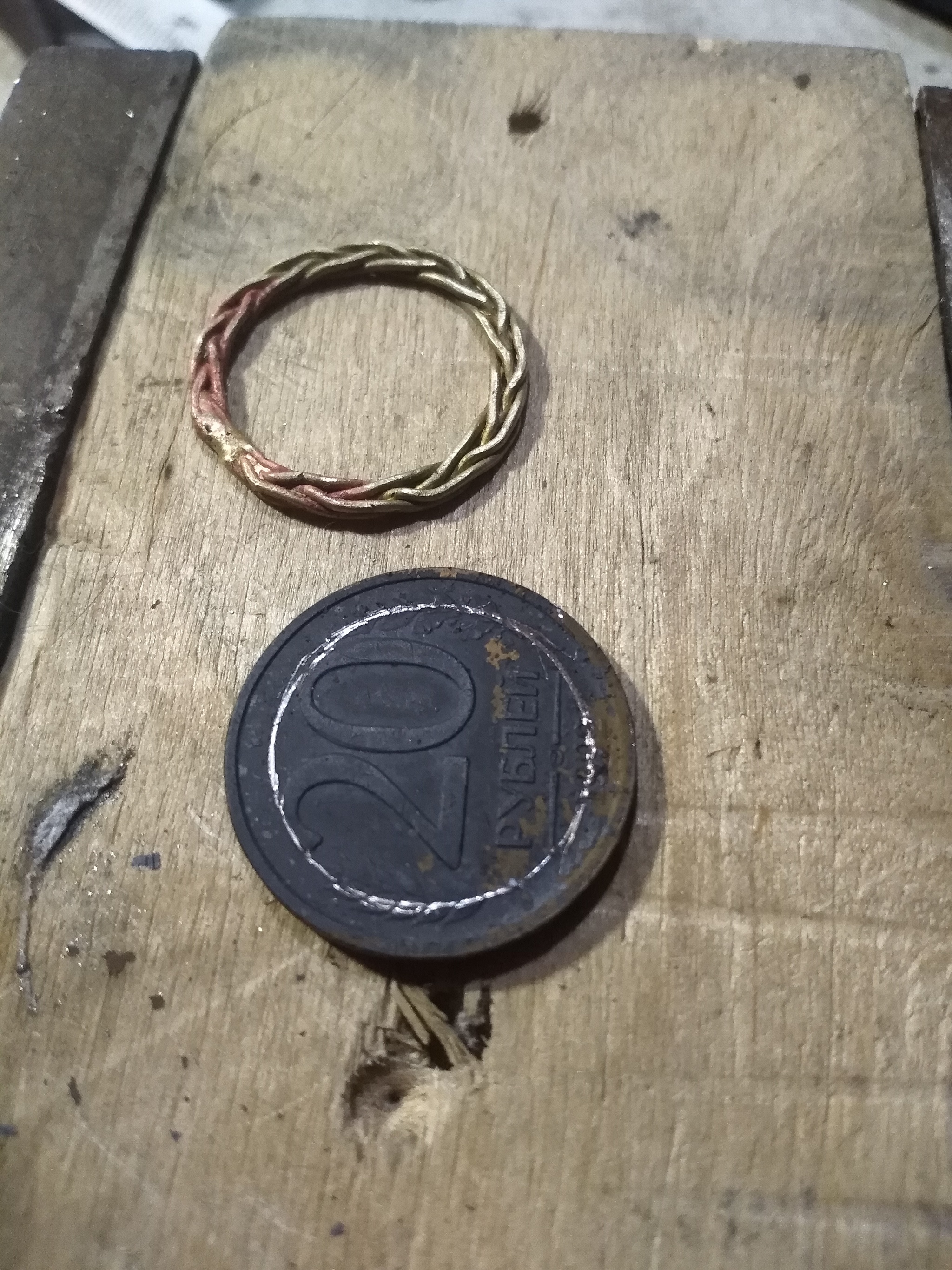 Плетение из латунной проволоки, пайка серебряным припоем, шлифовка, полировка. Спасибо за внимание)