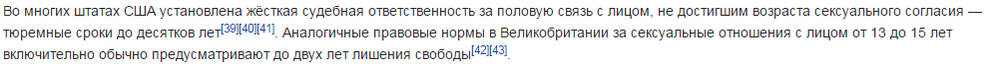 Ну у нас та же фигня: возраст согласия — 16 лет, а если старший из партнёров — совершеннолетний, а младший младше 16-ти лет. То в тюрьму сядет старший только если разница в возрасте больше четырёх лет. В ином случае — исправ. работы вроде как.