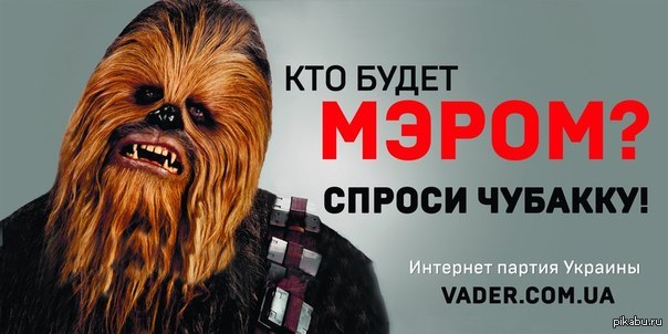 6 medvedmel Спроси Чубакку! 11 лет назад Такие баннеры стоят в городе Одесса. Вот так вот. Star Wars Чубакка Выборы мэра
