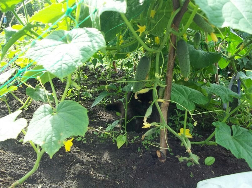 Если бы на её месте был мой кот - от огурцов ничего не осталось бы уже :д
