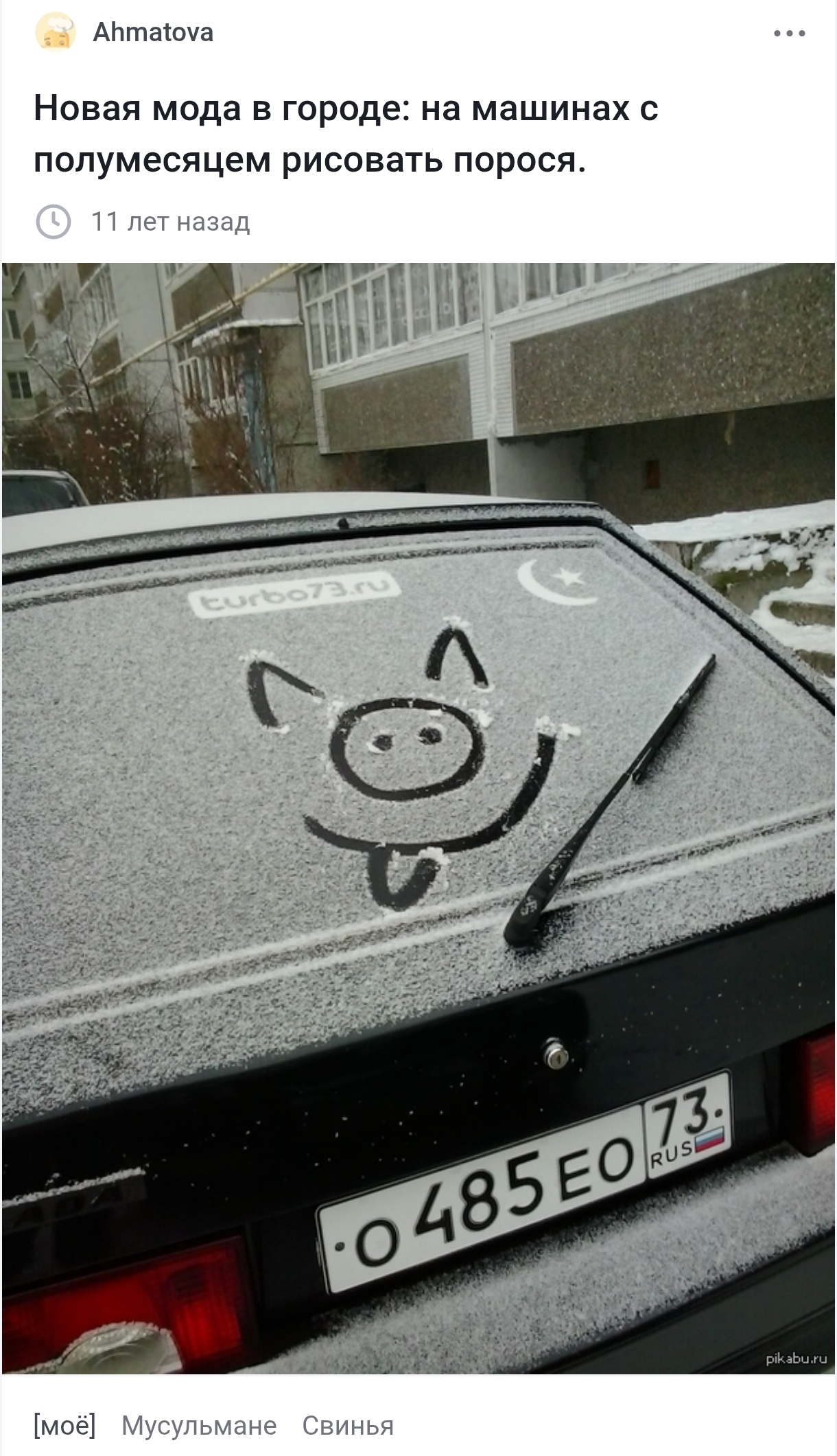 5805 DenKun Спустя 11 лет 7 месяцев назад Всплыло в рекомендациях после поста про ручных свинок в Европе.Не моё, поэтому без рейтинга. Новая мода в городе: на машинах с полумесяцем рисовать порося. Волна постов Из сети Круговорот Без рейтинга Скриншот 264 193 8 3 3 2 Ещё 1