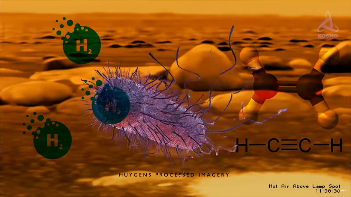 На Земле есть бактерии метаногены, которые используют для своей жизнедеятельности водород и ацетилен, а выделяют метан. Есть предположение, что на метаногены существуют и на Титане.