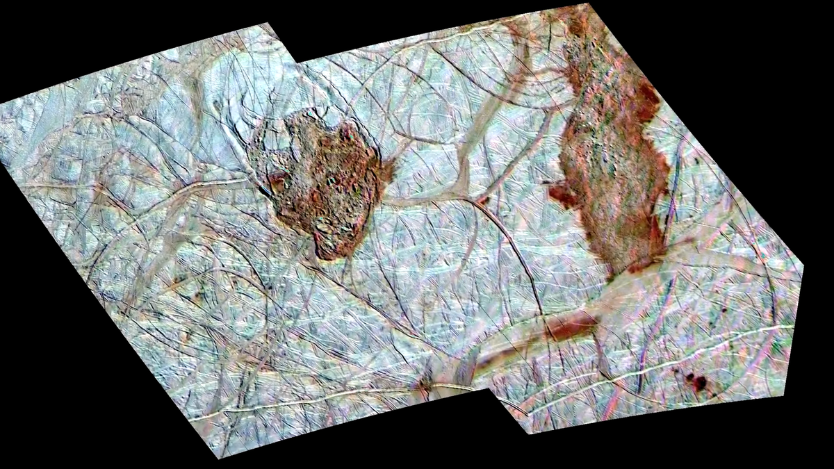 Красноватый цвет пятен на снимках позволяет предположить наличие соединений железа и серы. По-видимому, они содержатся в океане Европы и исторгаются на поверхность через расщелины, после чего застывают: