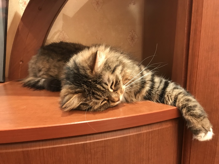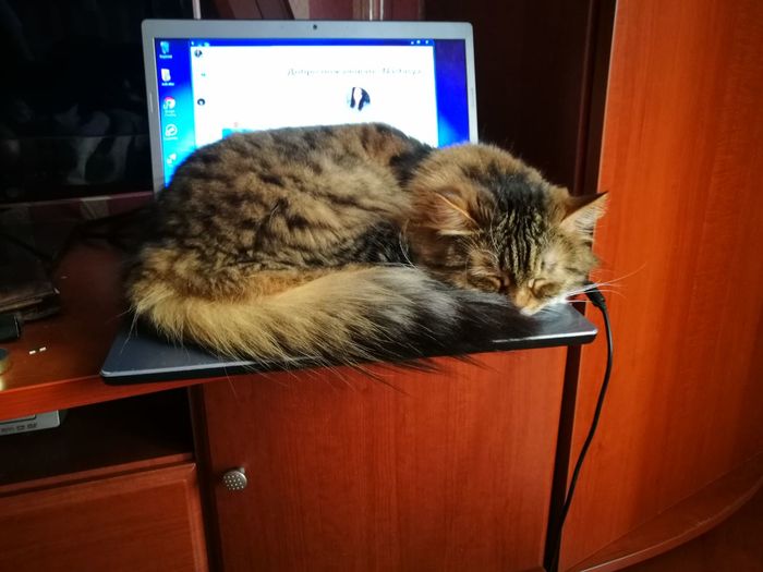 Кошка спит на всём, к чему прикасались люди.