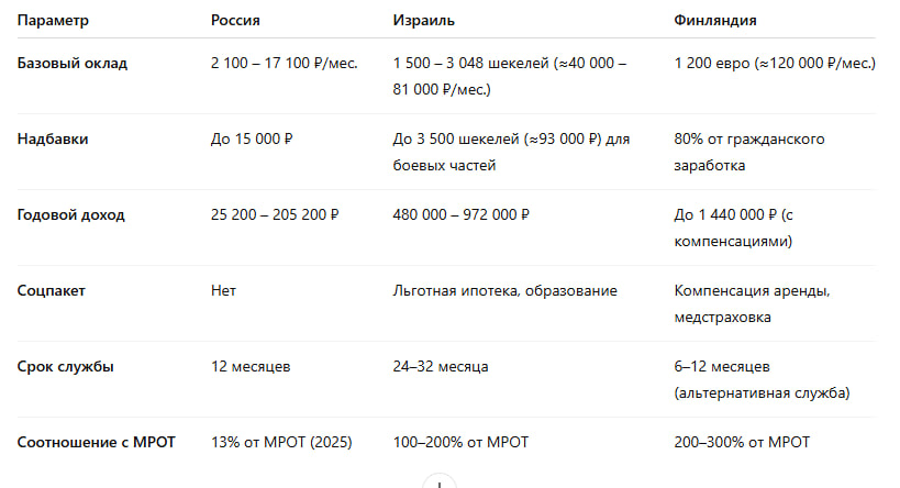 На основании открытых данных Минобороны РФ (Приказ №727 от 2023 г.) и международных источников предлагается рассмотреть параметры финансового обеспечения срочной службы в сравнительном контексте.