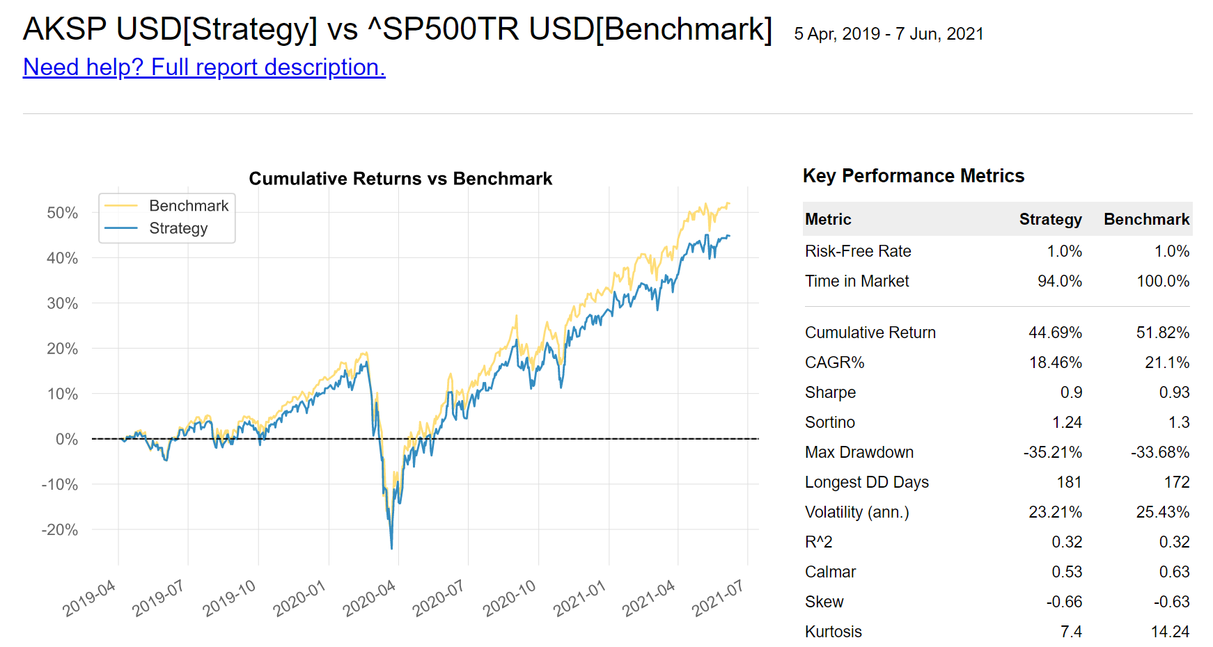 Далее фонд AKSP от Альфа-Капитал: за 26 месяцев фонд отстал от индекса аж на 7 с лишним процентов или более, чем на 2.5% каждый год, что может стоить инвестору отставанию от индекса на 42% за 20 лет.