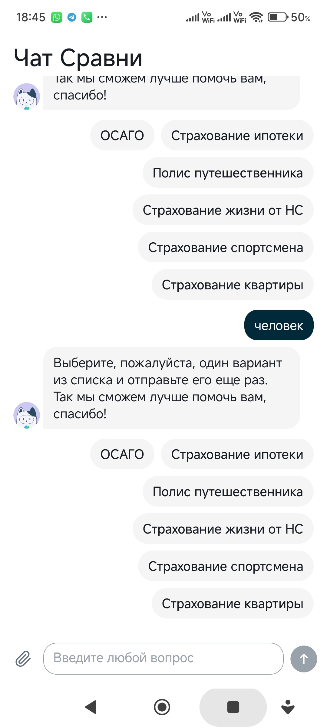 Пытаюсь обратиться в техподдержку с конкретным вопросом: "у меня два номера телефона и два аккаунта на "Сравни.ру". Один аккаунт верифицирован через Госуслуги, но пустой (так получилось), а второй аккаунт не подтверждённый, но на нём все полисы (и на мой авто, и на жену, и сына).