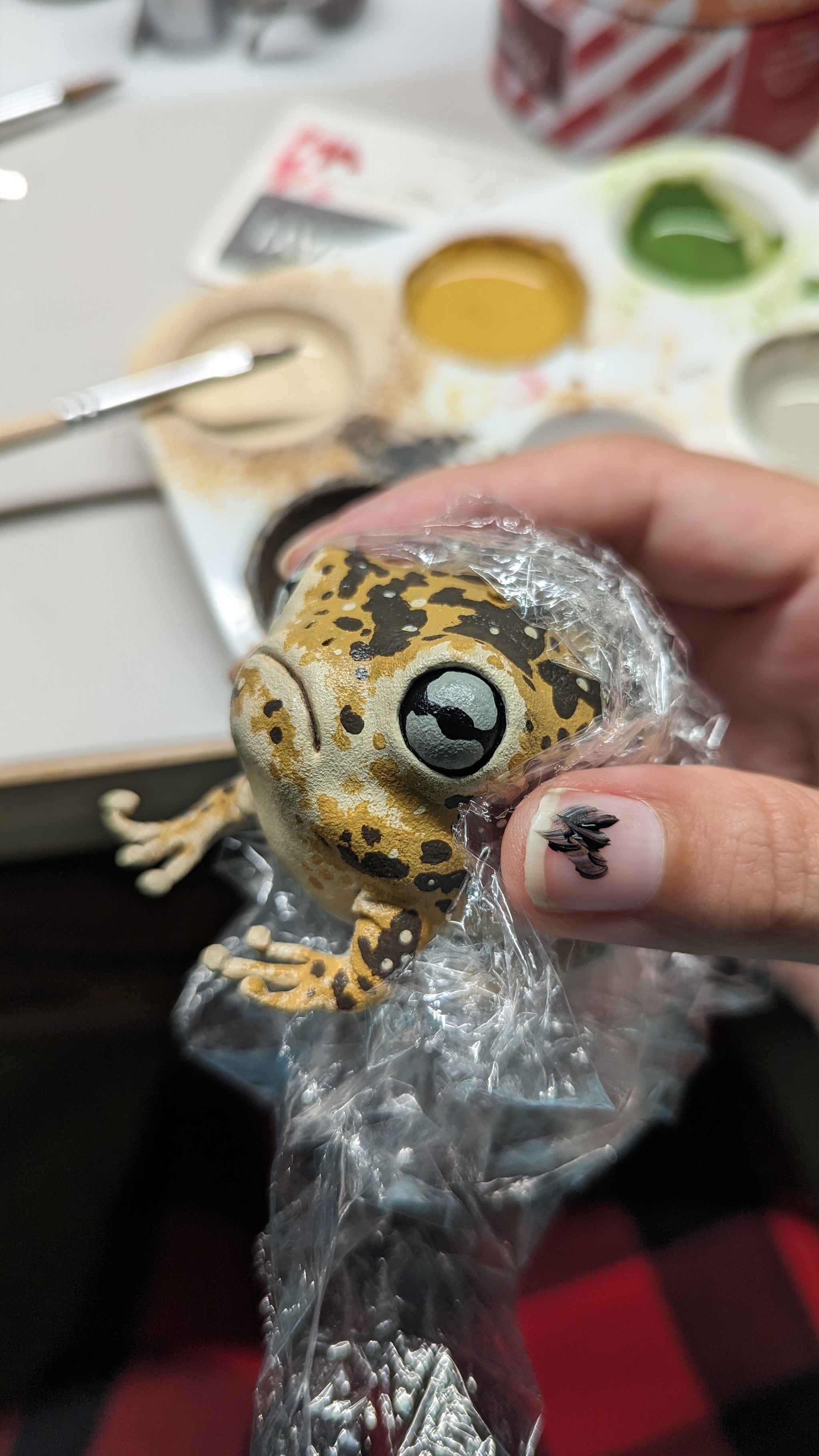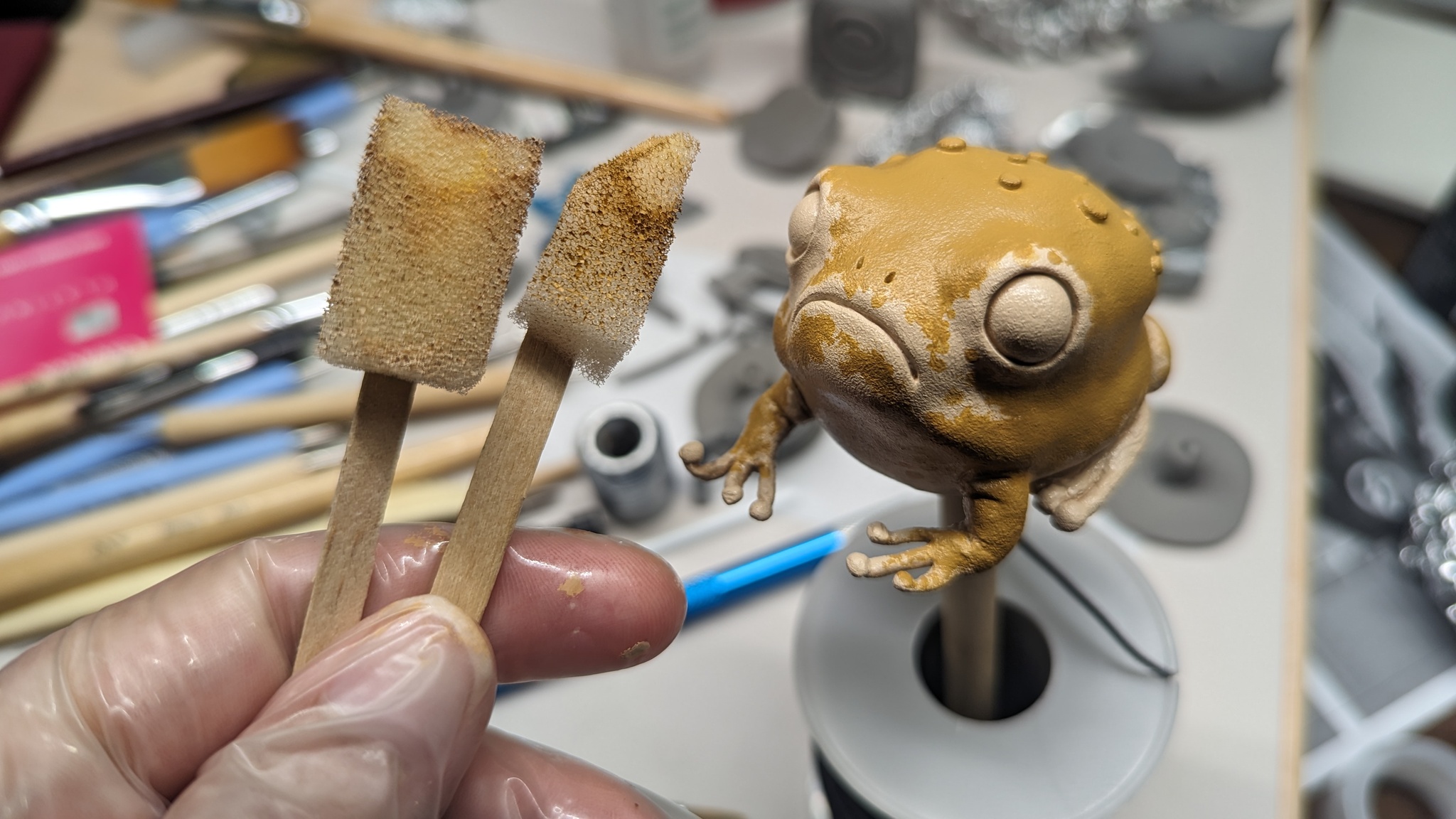 Наношу основной слой губкой, кисточкой пока не наловчилась, получаются разводы. И для такой фигурки некая "пупырчатость" даже подходит. Есть тут мастера, что красят кисточками только? Как красить основной слой без разводов?