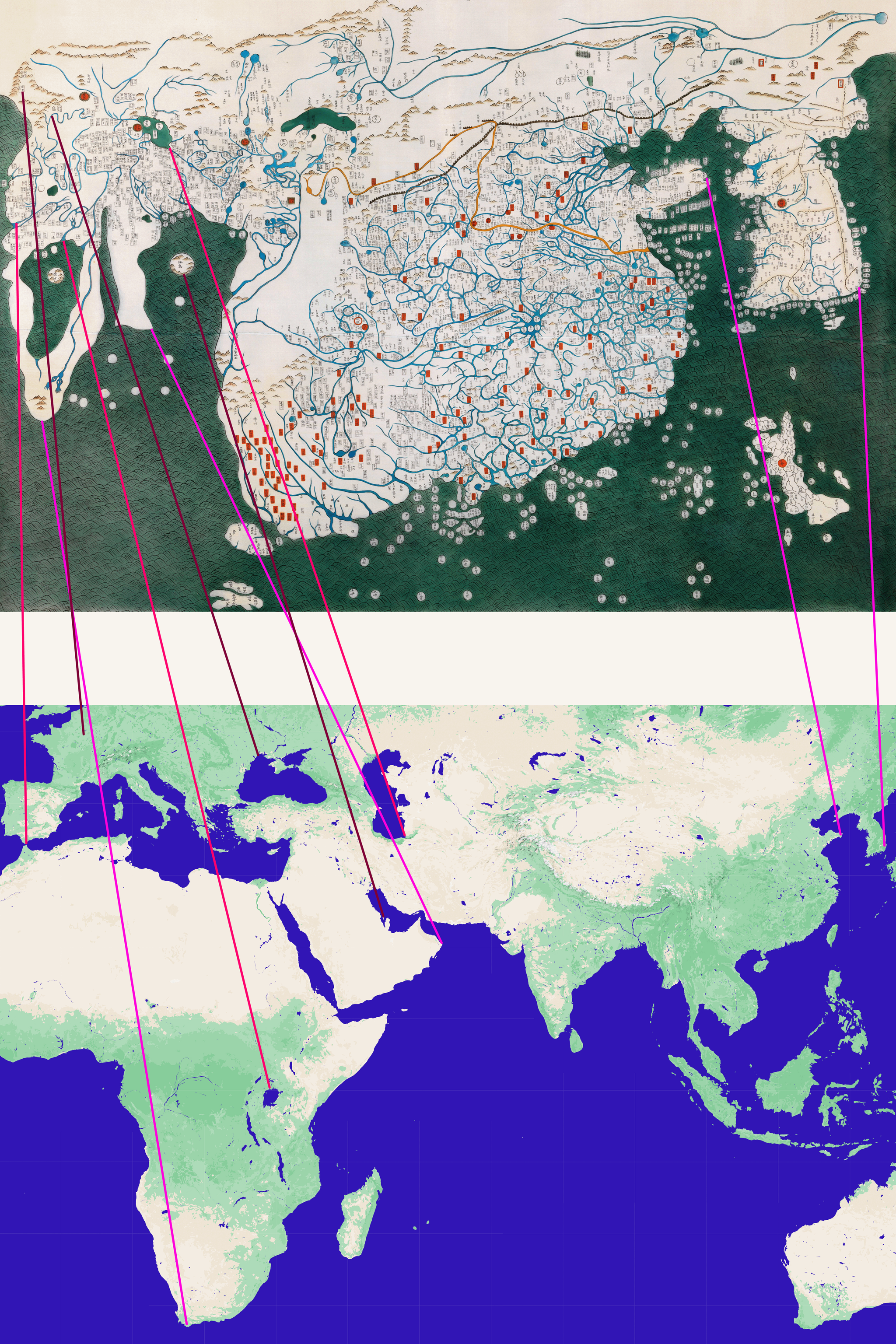 Эта карта по крайней мере в западной части, судя по всему, основывается на знаниях иранских монголов из Улуса Хулагуидов о мусульманских и европейских владениях, с которыми они были на короткой ноге. А вот Золотая Орда прискорбно плохо описана. Возможно, дело в усобицах, когда Золотая Орда противостояла Хулагуидам Ирана и Улусу великого хана, куда входил и Китай. Пока машешь саблей не до культурного обмена географическими познаниями.