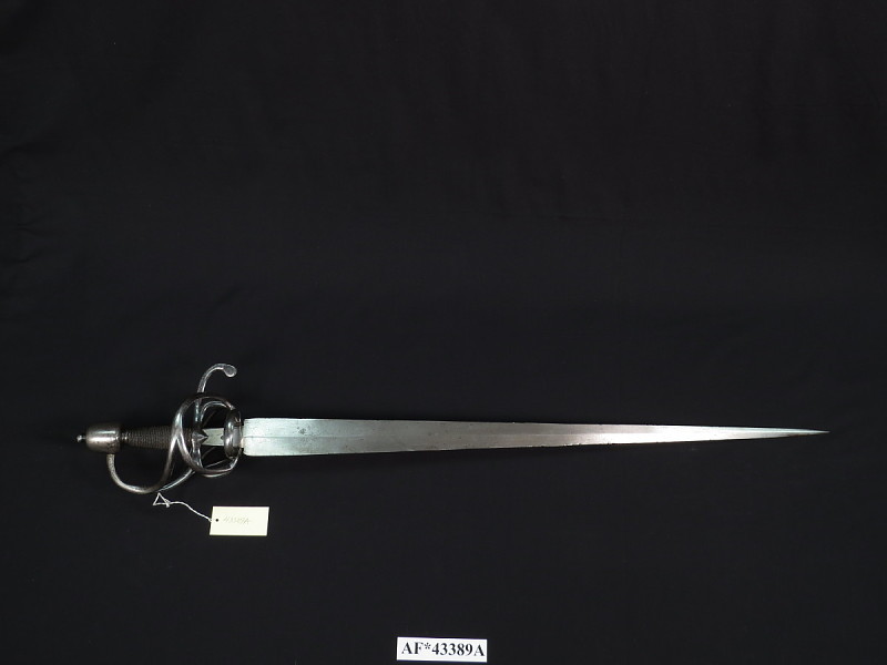 Клинок ромбовидного сечения, равномерно сходящийся к острию. Перекрестье довольно развитое, с дополнительными прутьями вокруг кисти.