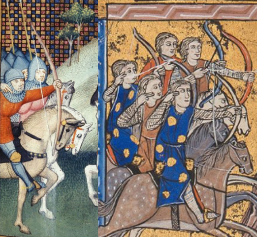 Хм... Не помешало бы уточнить чья конница изображена на этих иллюстрациях. А то у всяких сарацин и прочих азиатов конник-лучник считался нормой.