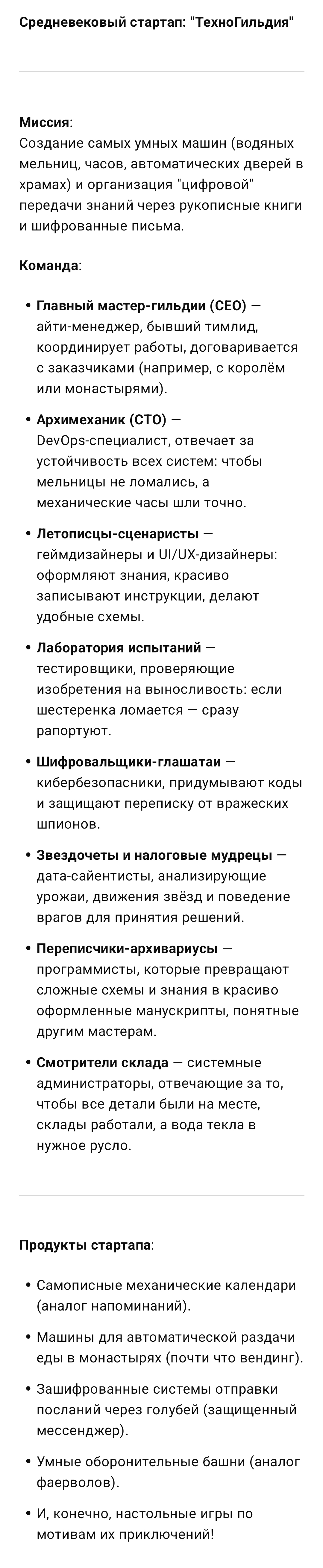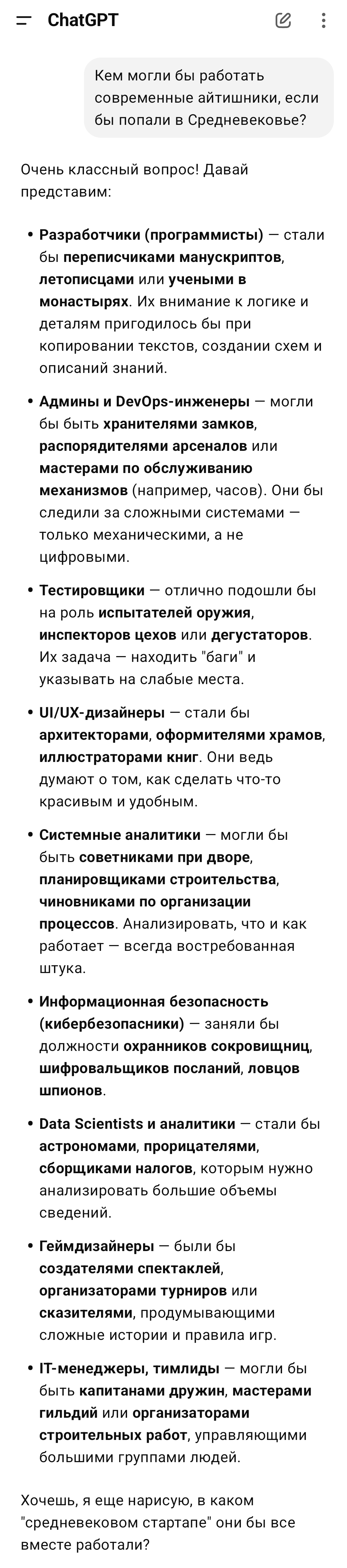 0 Torriadore ChatGPT Средневековый стартап, архимеханик и налоговые мудрецы 7 месяцев назад Бонус в комментах! ChatGPT Скриншот Средневековье IT Стартап Длиннопост 1 1 Ещё 0