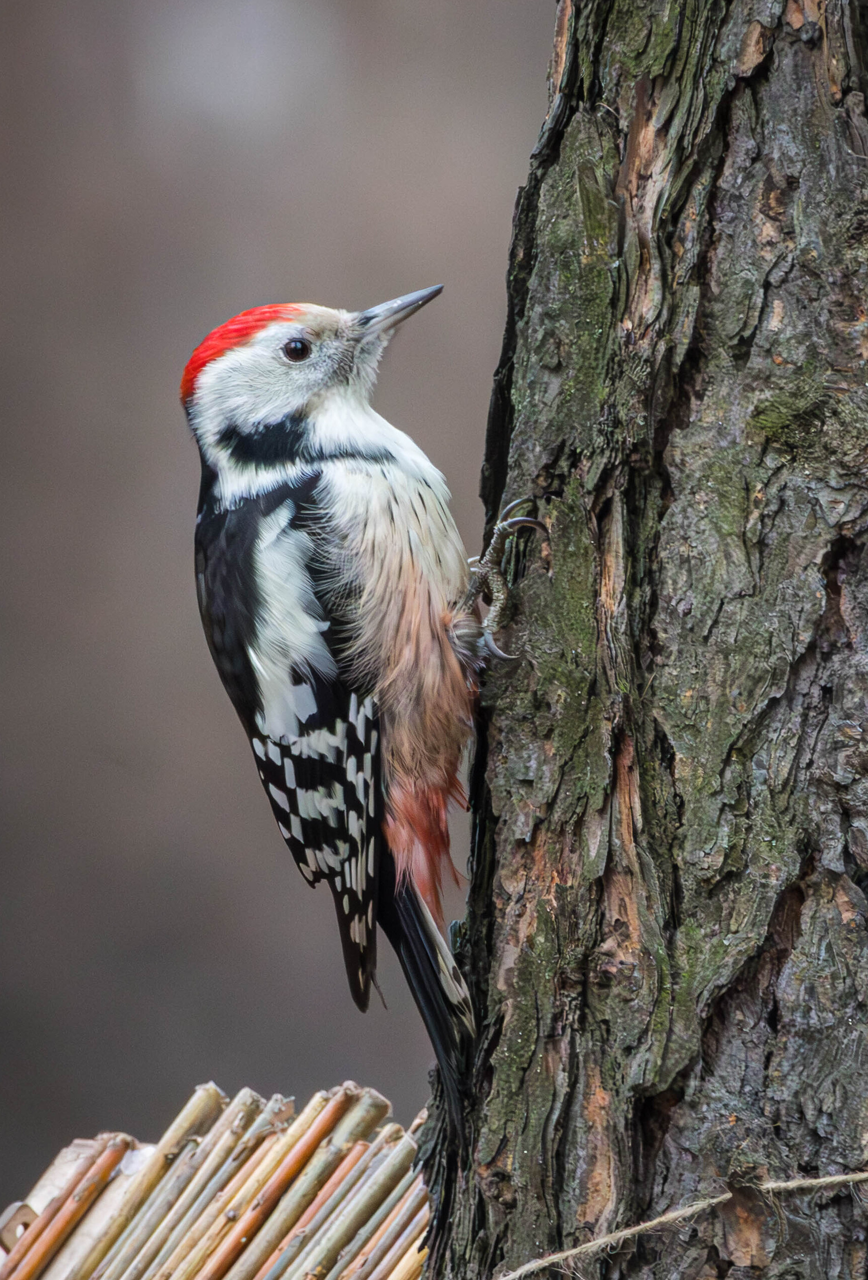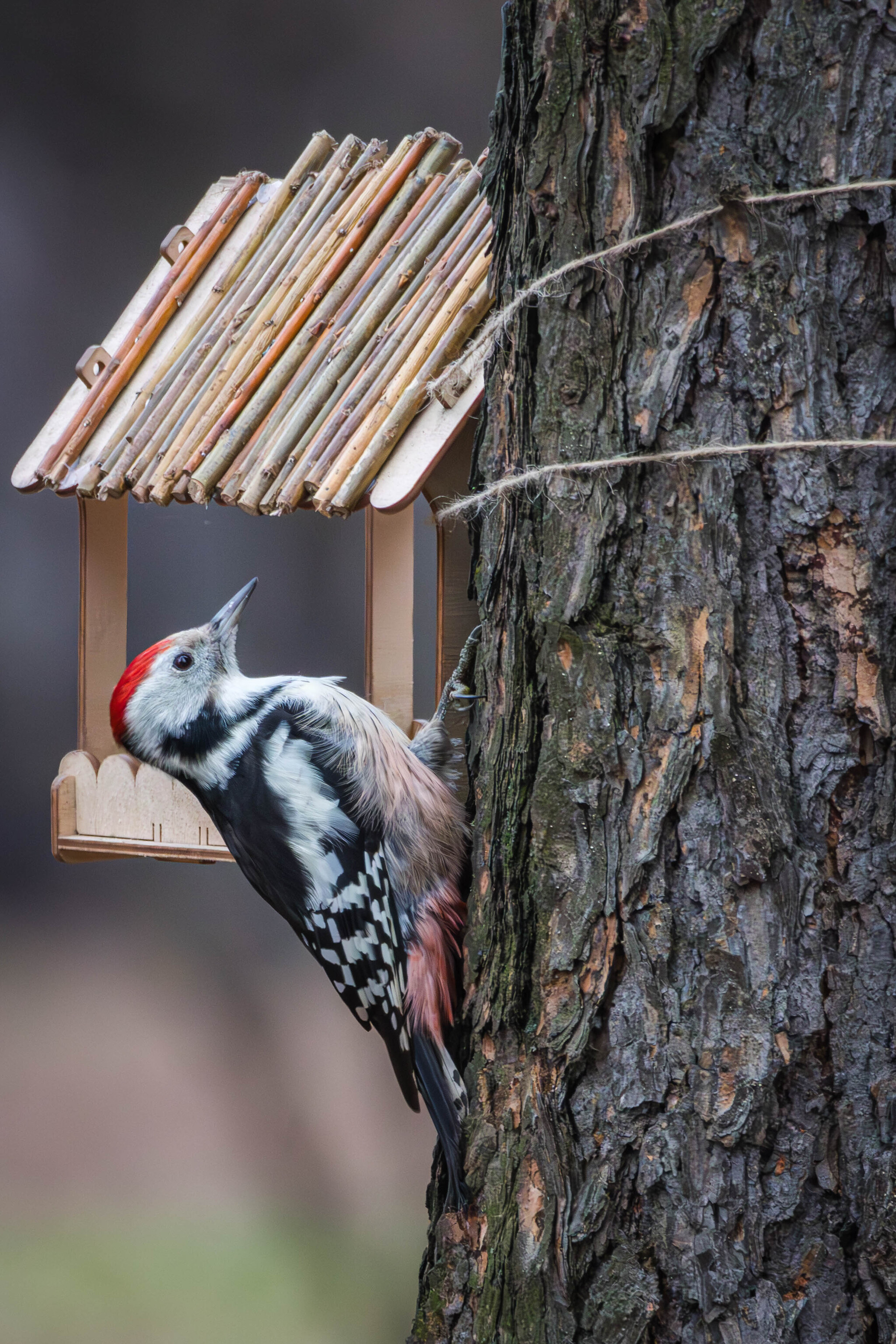 Больше всего, наверное, мне везет на средних пестрых дятлов. Несмотря на их, вроде бы, редкость (если верить Красной книге Москвы), встречаются они мне чаще остальных дятлов. Причем как на кормушках в самых людных местах парков, так и в глубине. Слышно их слабо, в отличие от желны, но в целом услышать можно, а вот на кормушке их заметить довольно легко. Дятлов я люблю, так что всегда с удовольствием их фотографирую )