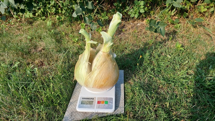 Его вес 2642 грамма. Я примерно так и думал. Другие луковицы больше этой, и они еще немного наберут и поэтому мои прогнозы по самой большой луковице 3-3.5кг. Вообще, на такой вес я рассчитывал, когда только его сажал. Все же надо здраво оценивать свои силы. Кстати, луковица на фото уже и так является самой тяжелой луковицей когда-либо выращенной в России.