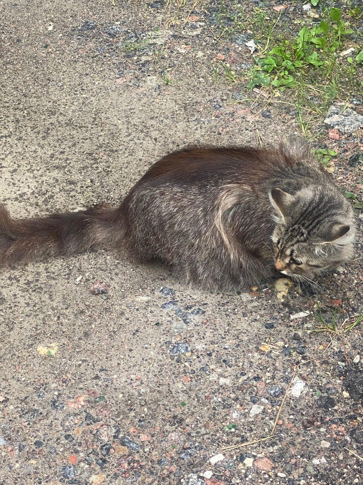 Кошка ласковая, подходит к людям. Нужен волонтёр, кто сможет её отловить и отвезти на срочную стерилизацию.
