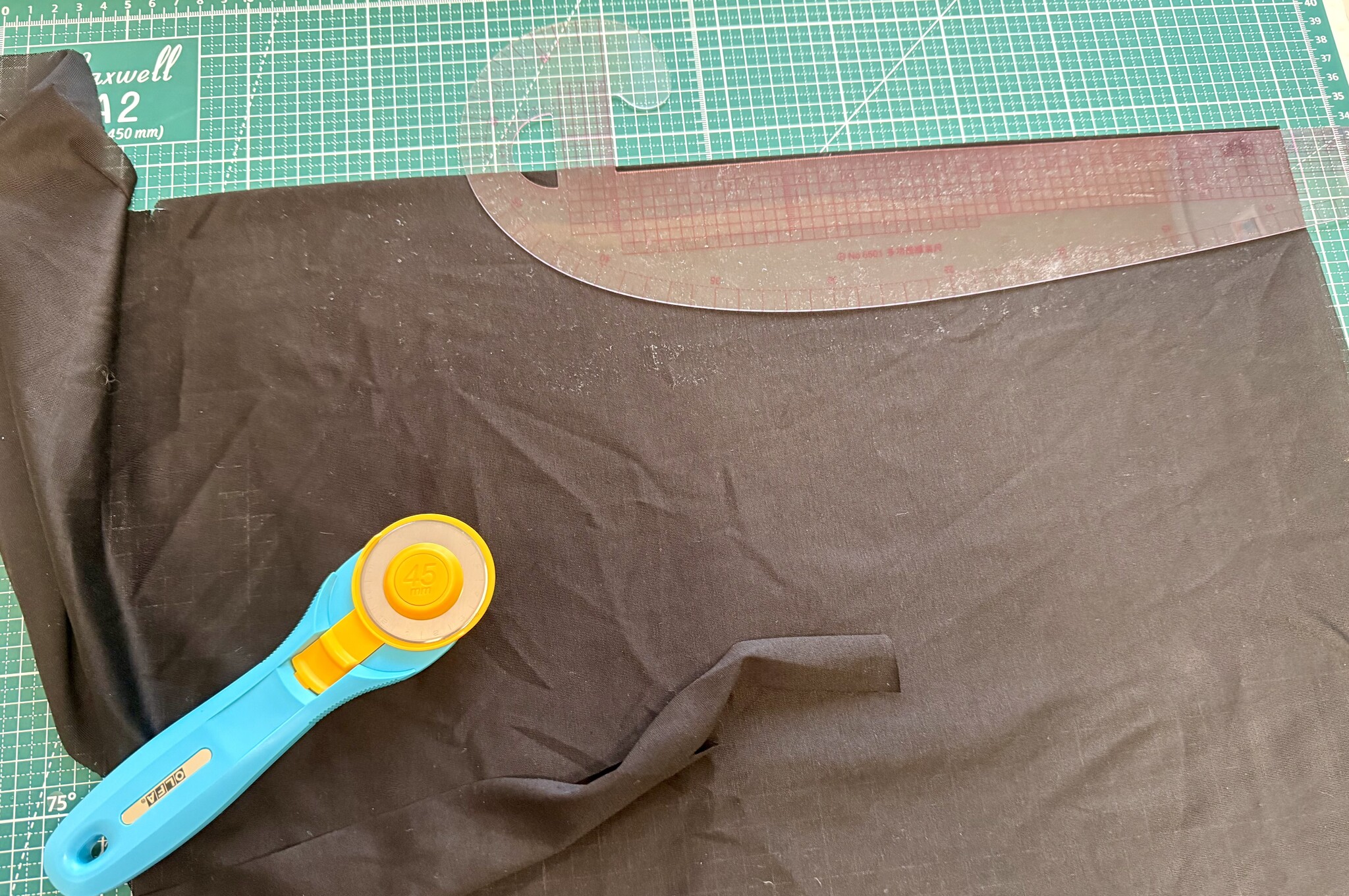 И чем дальше, тем сложнее становится. Вырезать кальку, обвести её мылом на ткани, нарисовать припуски, вырезать всё это. Вот я на этом моменте уже даже писать заебался, не то что делать. Вырезать, кстати, удобнее всего оказалось круглым ножом для пиццы. Вот таким.