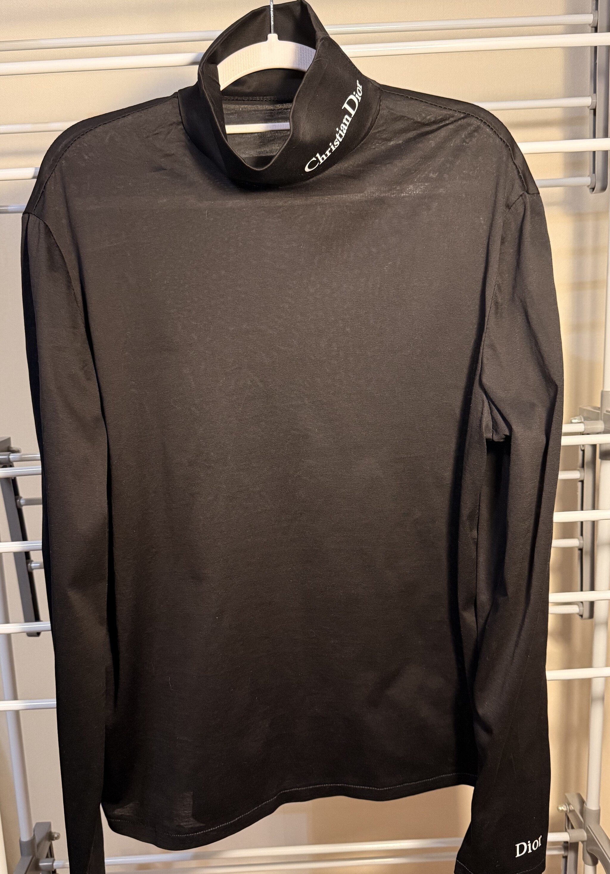 На самом деле у меня был какой-то референс, и я его придерживался. Цель была - повторить мою любимую водолазку. Купил я её как обычно, на распродаже, в Париже, на сельскохозяйственной выставке. Была последняя. А то купил бы себе таких штучек 6. Ибо качество пиздатое прям. Особенно всегда радовала глаз надпись на горловине с брендом и маленьким лейблом на руке. Это и воссоздал.
