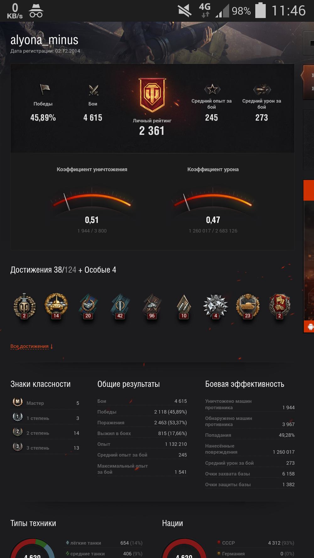 За 4.6 тысяч боев статистику еще можно исправить, как и научится играть, + судя по ее среднему урону - она играет чаще на маленьких уровнях, а там большинство "красных", так что я не понимаю твоих претензий.