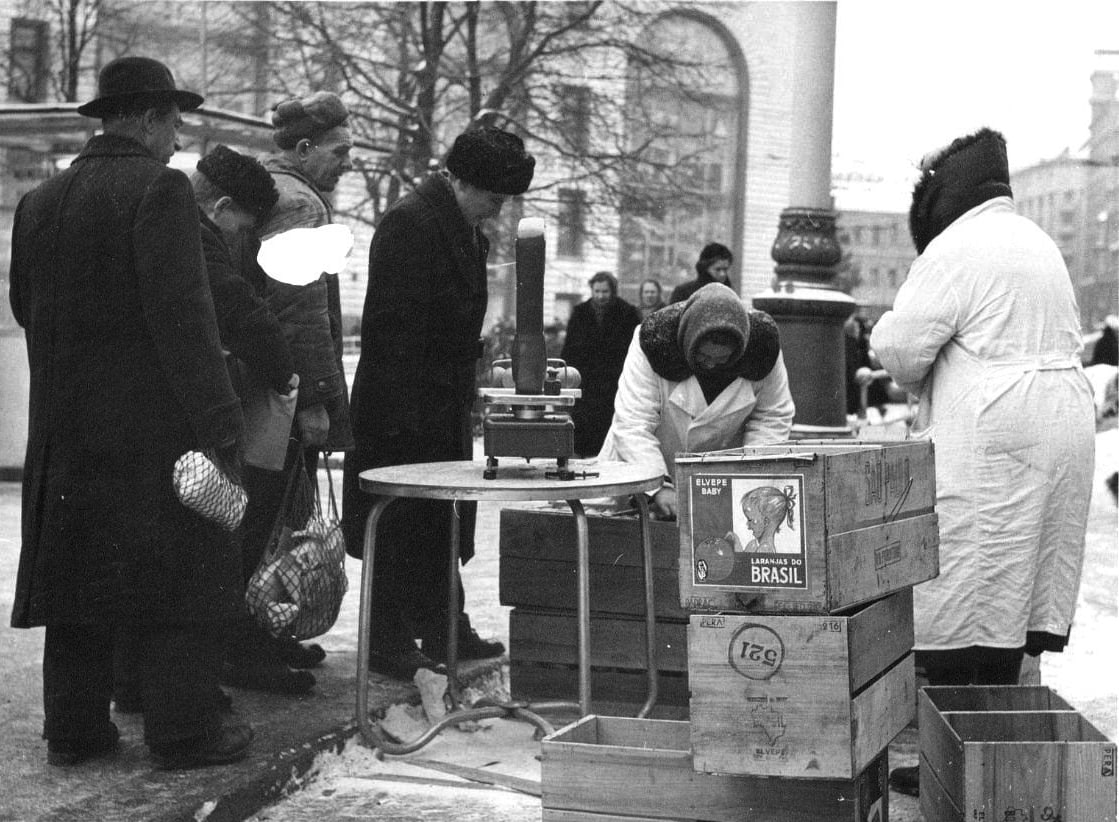 Казалось бы – обычные апельсины, а сколько вокруг них было восторга и ажиотажа! В начале 60-х оранжевые плоды из Бразилии выглядели почти чудом, олицетворением далёких стран и мечтой любого ребёнка. Люди стояли в очередях на морозе, чтобы ухватить пару килограммов — домой, детям, к Новому году.