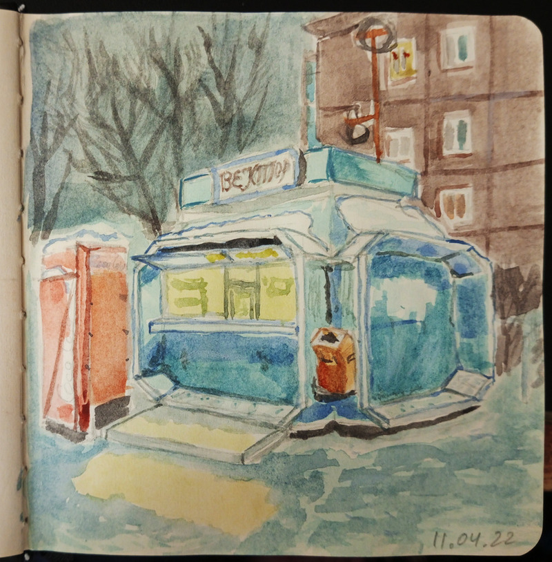 Какое-то знакомое место... Однажды я увидел в инете фотку ларька, где-то в какой-то "эстетике ебеней" (вполне возможно, что и на пикабу) и даже тоже решил нарисовать. Интересно, это то же место, только ларёк заменили на магазин? Или вообще типичное место из любого города страны? )