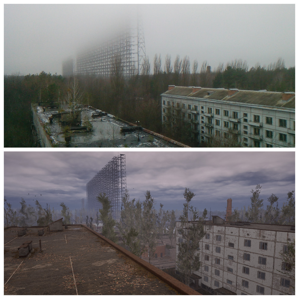 И Факел. Так же местоположение в игре отличается от реального. Во время экскурсий в ЧЗО, когда проезжали мимо него, экскурсоводы показывали, как там заливается счётчик Гейгера, поэтому меня порадовала отсылка разработчиков к реальности в том плане, что и в игре тут радиация зашкаливает. Такое же радиоактивное пятно они добавили в Припяти возле колеса обозрения