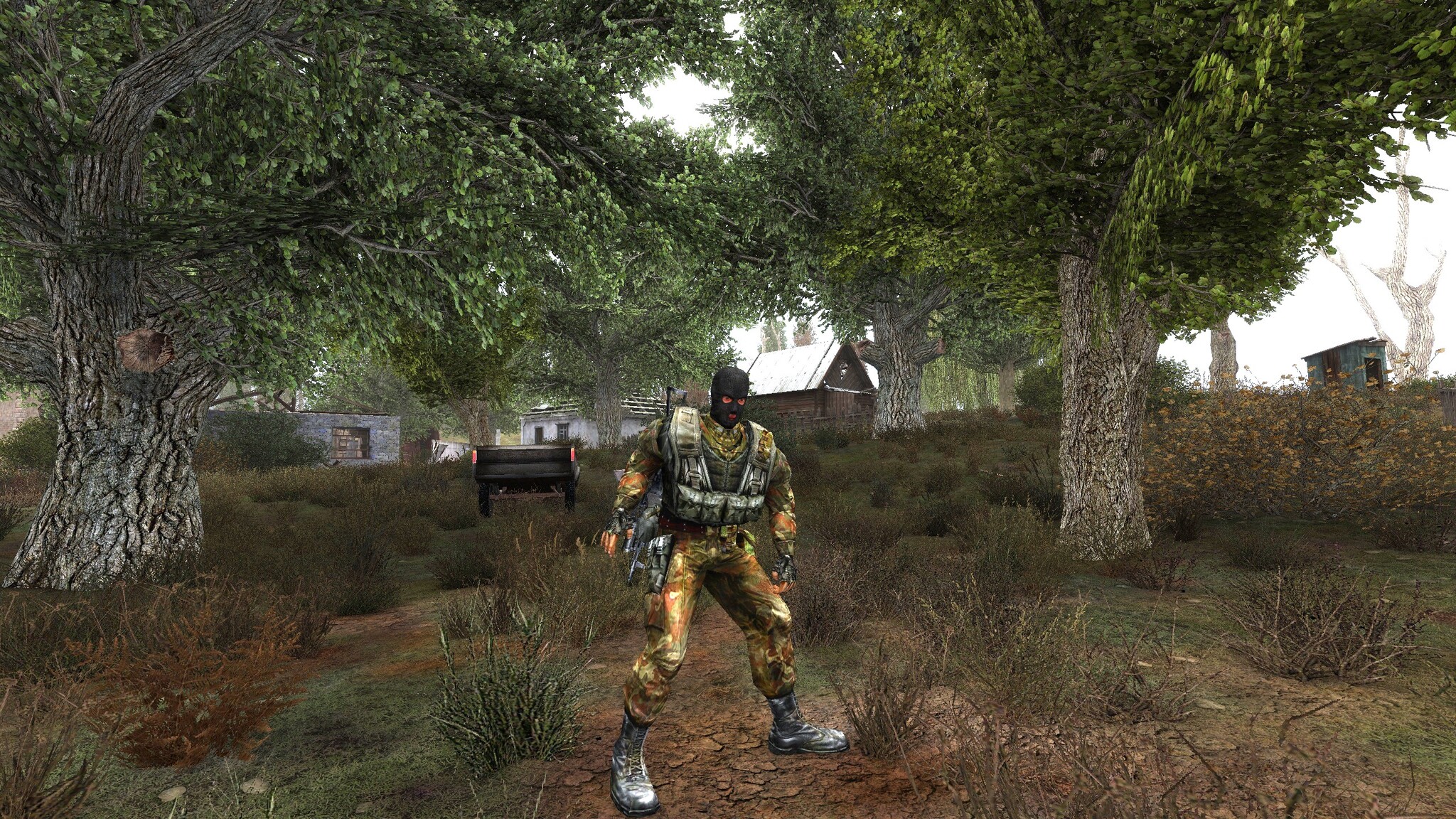 Придя на место, я обнаружил, что отряд окружён стаей химер. Начался ожесточённый бой, в ходе которого мутанты случайно попадали в близлежащие аномалии и разрывались ими на части. И тут местный A‑Life начал подкидывать неожиданные сюрпризы: в тот же момент, в соседней заброшенной деревне какие-то бандиты нарвались на толпу зомби и у них тоже завязался бой. В итоге зомби выдавили бандитов и те, сквозь кусты, ринулись в нашу сторону! Теперь я был занят не только спасением товарищей от химер, но и отстрелом несущихся на меня перепуганных, но хорошо вооружённых бандитов. Это уже было случайным событием, не связанным с моим квестом. И вот такие вещи заставляют просто кайфовать. Хотя то задание выполнить было весьма непросто.