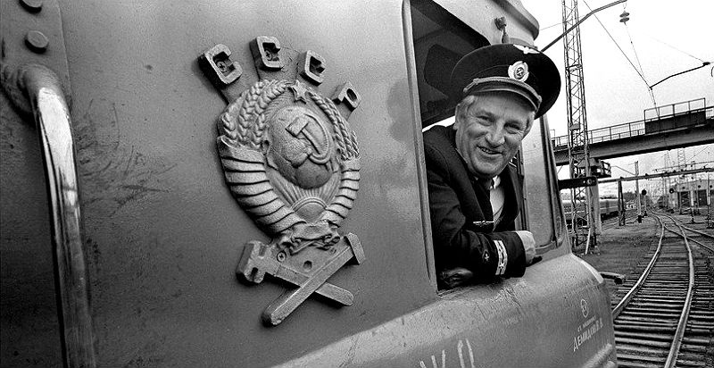 Машинист локомотива, снимок 1980 года, автор Владимир Ролов: