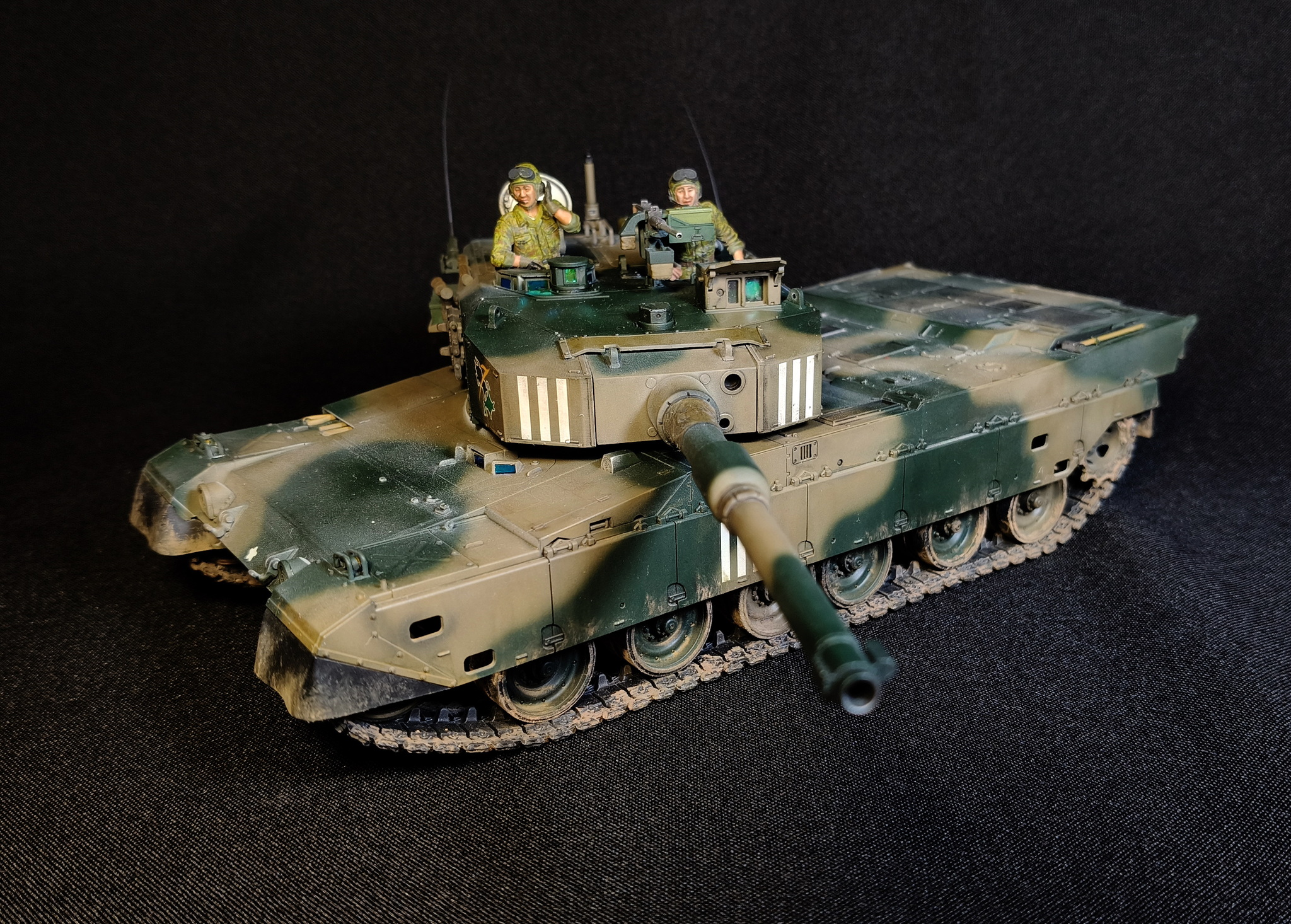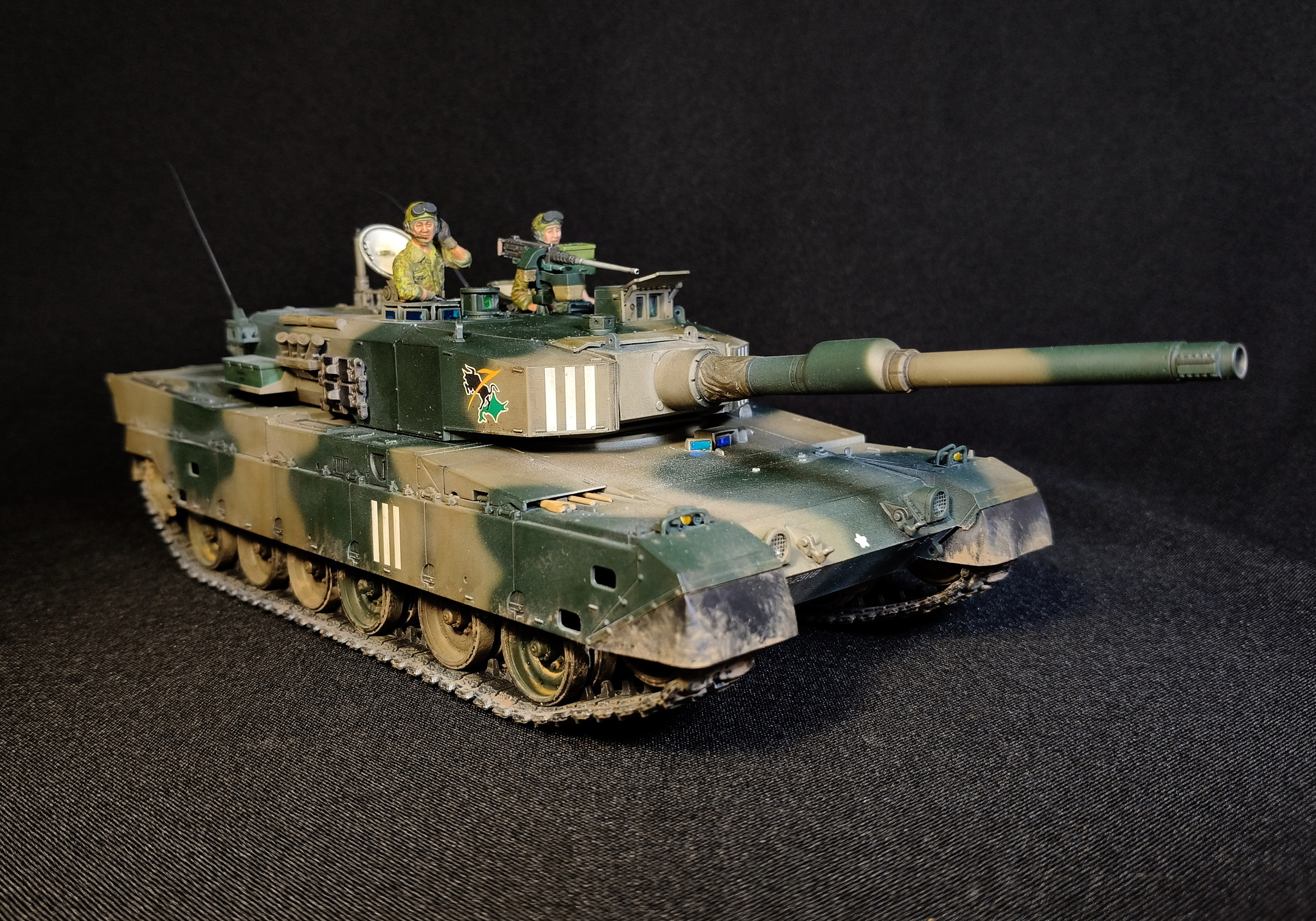 Представлена модель ОБТ Type 90 (Тип 90) из состава 7 Division, 71 Tank Regiment, 4 Company JGSDF (4-ой роты 71-го танкового полка 7-ой Дивизии Сухопутных Сил Самообороны Японии), город Титосэ, остров Хоккайдо, Япония, 2022 год. Модель фирмы Tamiya, масштаб 1/35.