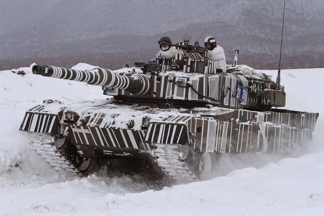 Однако, несмотря на прогрессивную подвеску и хорошую динамику, Тип 74 по совокупности характеристик представлял собой нечто среднее между М60 и Леопард 1 и многими специалистами считался морально устаревшим уже на момент принятия на вооружение. Требовался полноценный ОБТ с толковой защитой и мощной пушкой, хоть и адаптированный под местные условия. Японское Верховное командование поставило задачу конструкторам Мицубиси создать мощный и современный полностью отечественный танк, превосходящий советский T-72 по всем параметрам. Разработка опытного образца под названием TK-X была начата в 1970 году. В 1985 году было создано два опытных образца под индексом ST-C, и в 1989 году разработка танка была завершена. На стадии разработки первые прототипы получили бронирование, сравнимое с бронированием британского танка Challenger, а бронирование серийной модификации ещё было усилено, в итоге защита танка способна выдерживать выстрелы собственной пушки на близких и средних дистанциях. Вопреки распространённому заблуждению, вызванному в первую очередь внешней схожестью с Leopard 2А4, немецкие конструкторы не участвовали в создании танка, единственный аспект, по которому проводились консультации с немецкими инженерами, касался пушки Rh120.