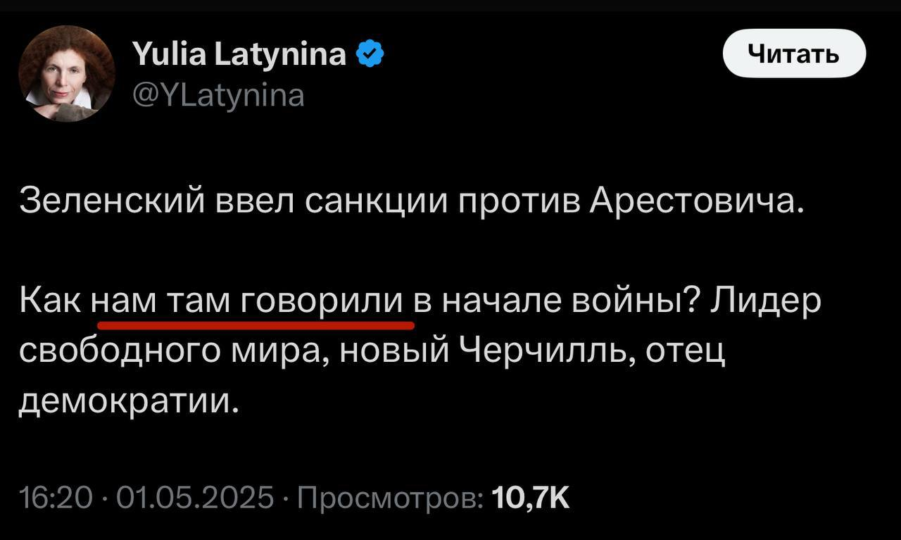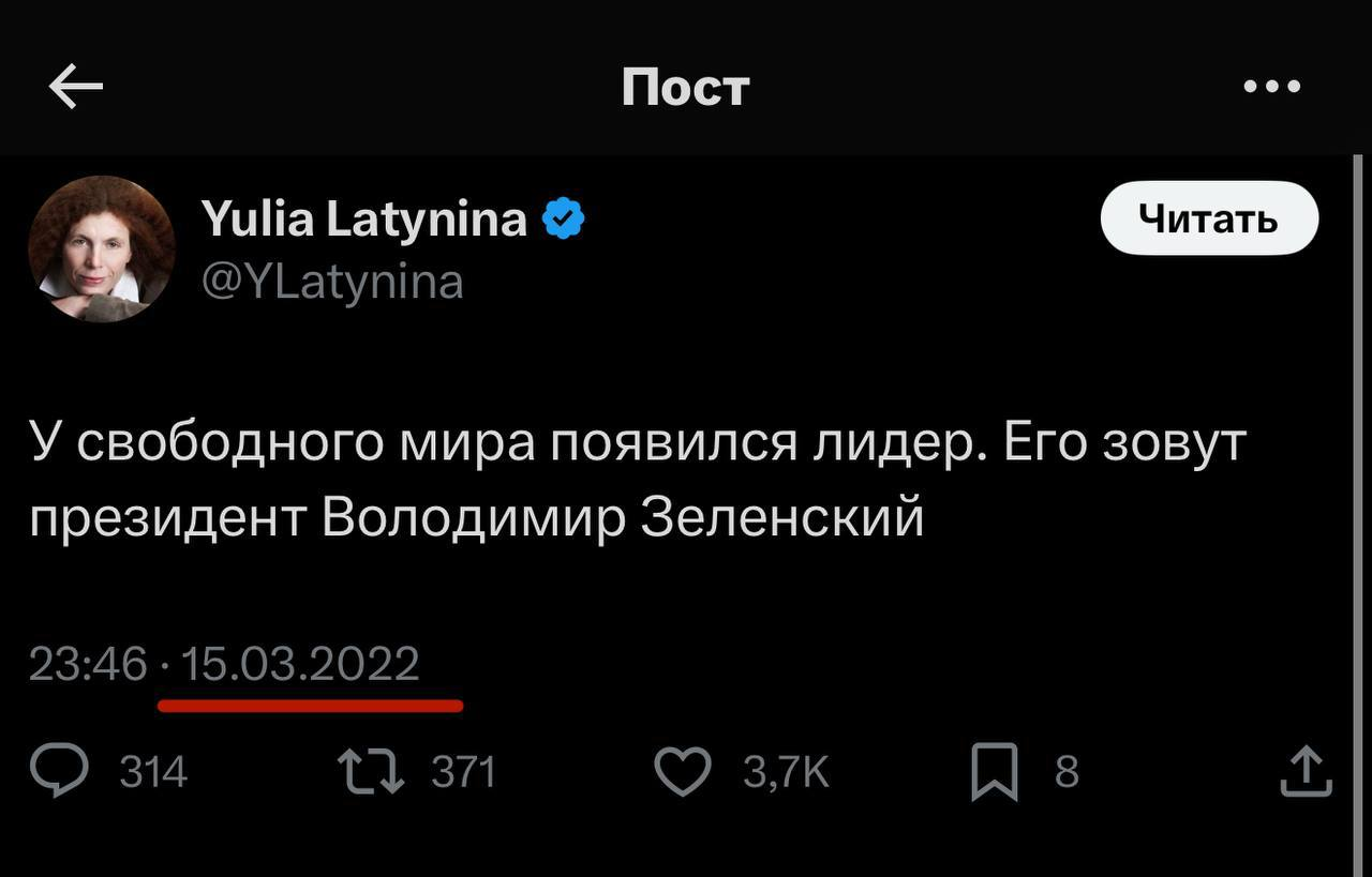 4969 Pervozavr 5 месяцев назад Стало/Было3 Политика Юмор Россия Украина Владимир Зеленский Алексей Арестович Юлия Латынина Оппозиция X (Twitter) Скриншот Переобувание 326 13 7 Ещё 0