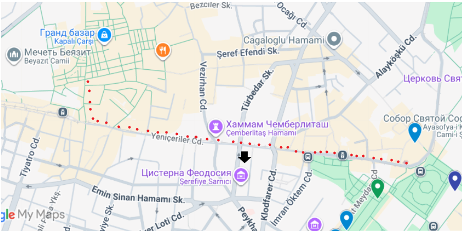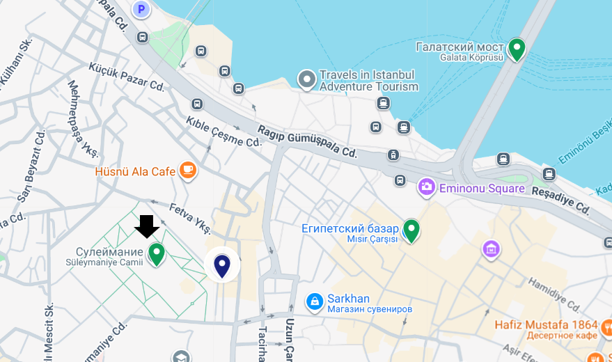 Как добраться - от площади Султанахмет спускаемся вниз к заливу вдоль трамвайной линии. Буквально 5 минут и справа будет вход.