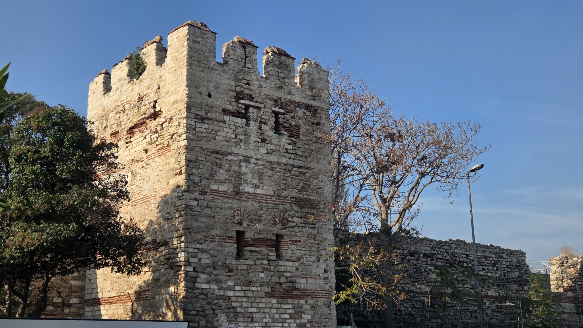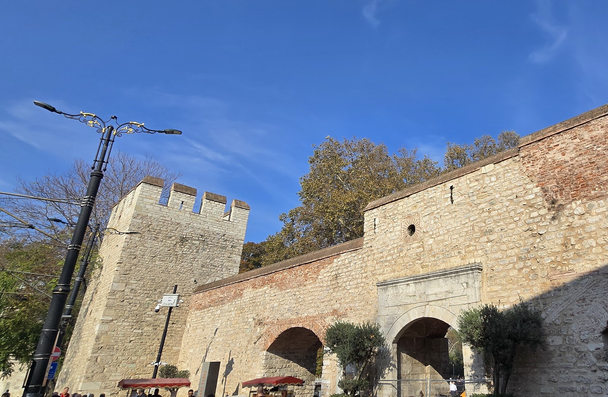 Если вы смотрели фото из других постов по району Султанахмет, то могли заметить, что старинная часть города окружена мощными крепостными стенами. Разумеется, парк Гюльхане находится внутри периметра стен и на стены был подъем , и со стен могли БЫ открываться виды ничуть не хуже, чем из Топкапы.... но.... стены на реставрации и близко не подойти, а леса разумеется портят вид. Короче, заезжайте лет через 10 ))