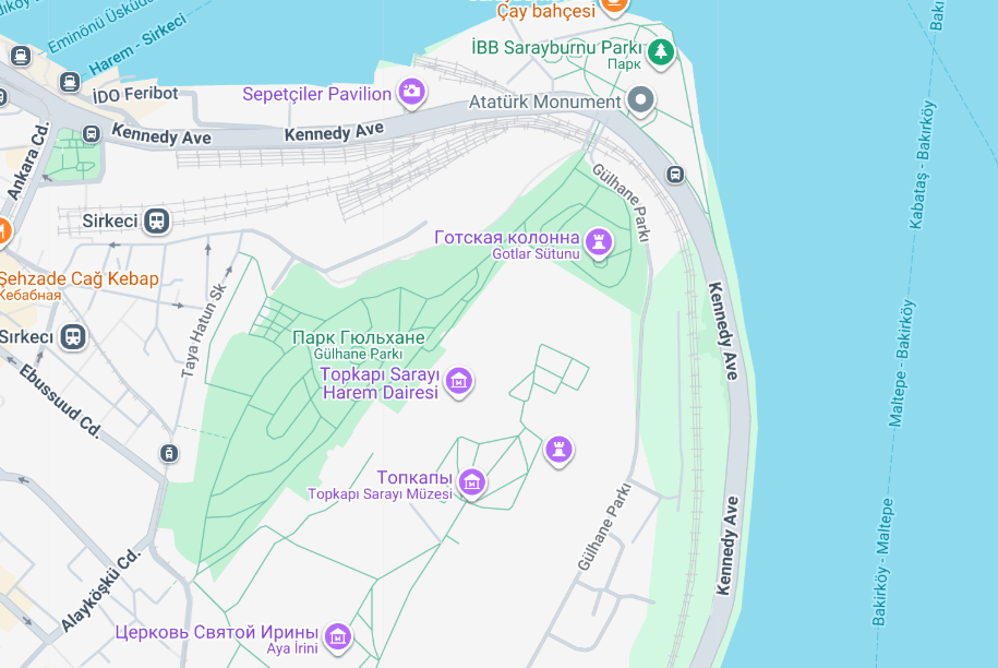 Парк Гюльхане и набережная района Сутланахмет. Красивое, но в лесах.