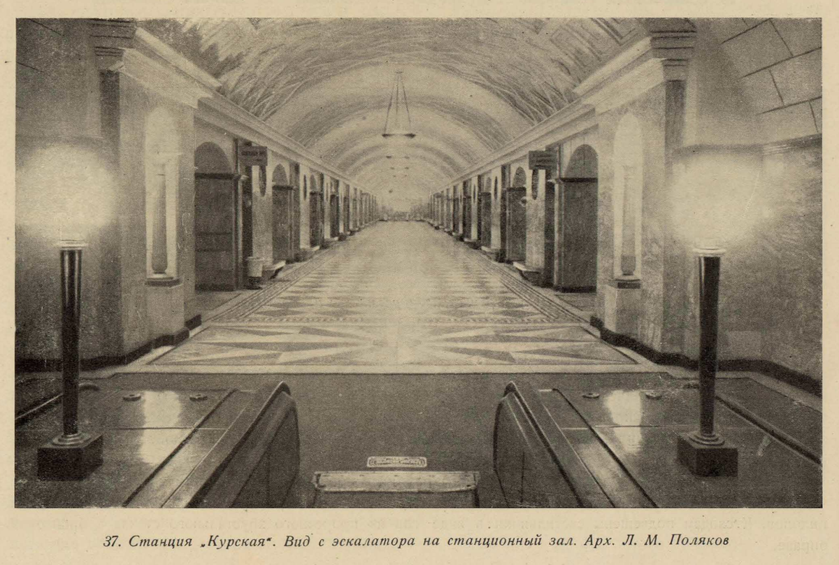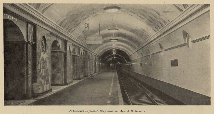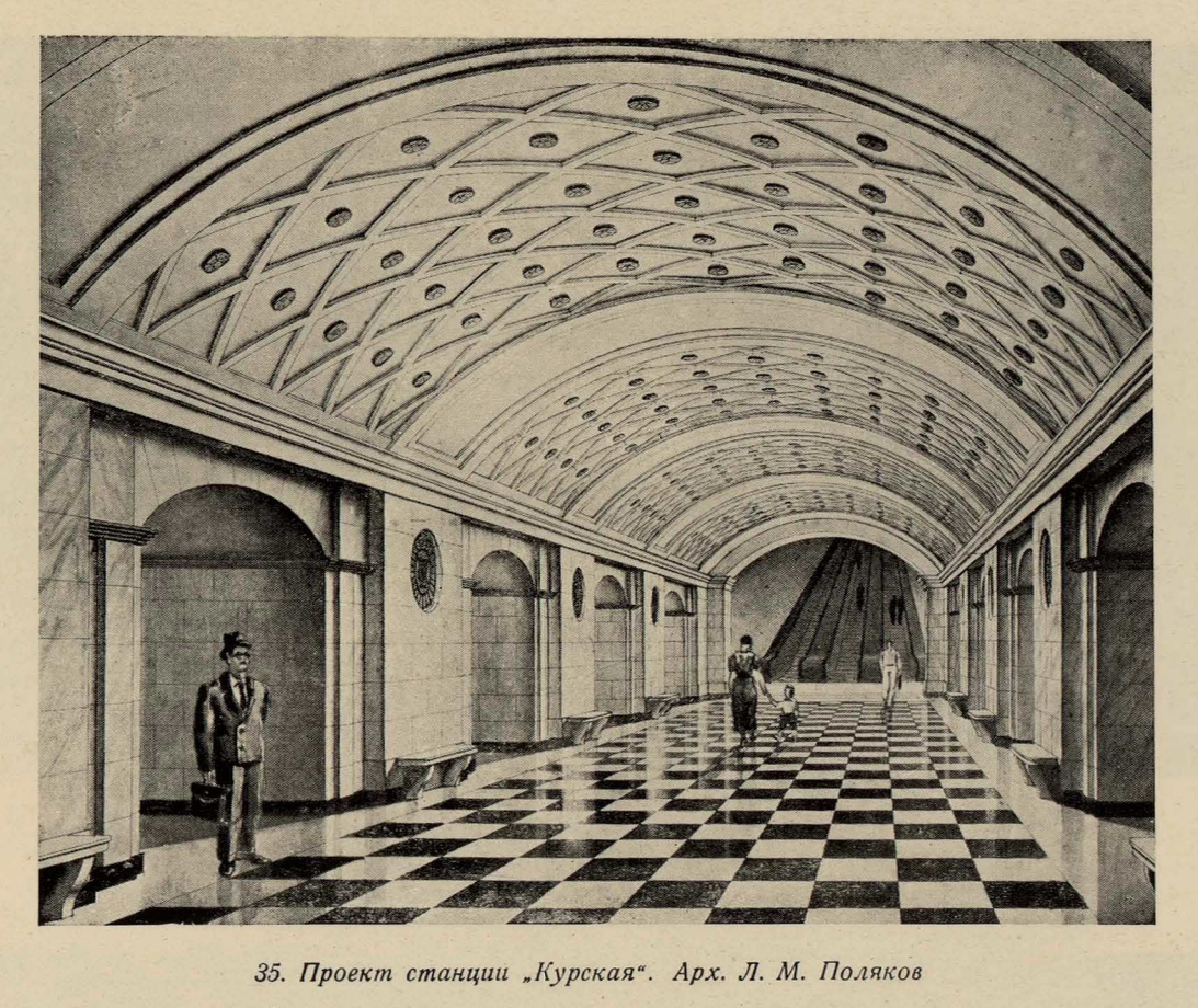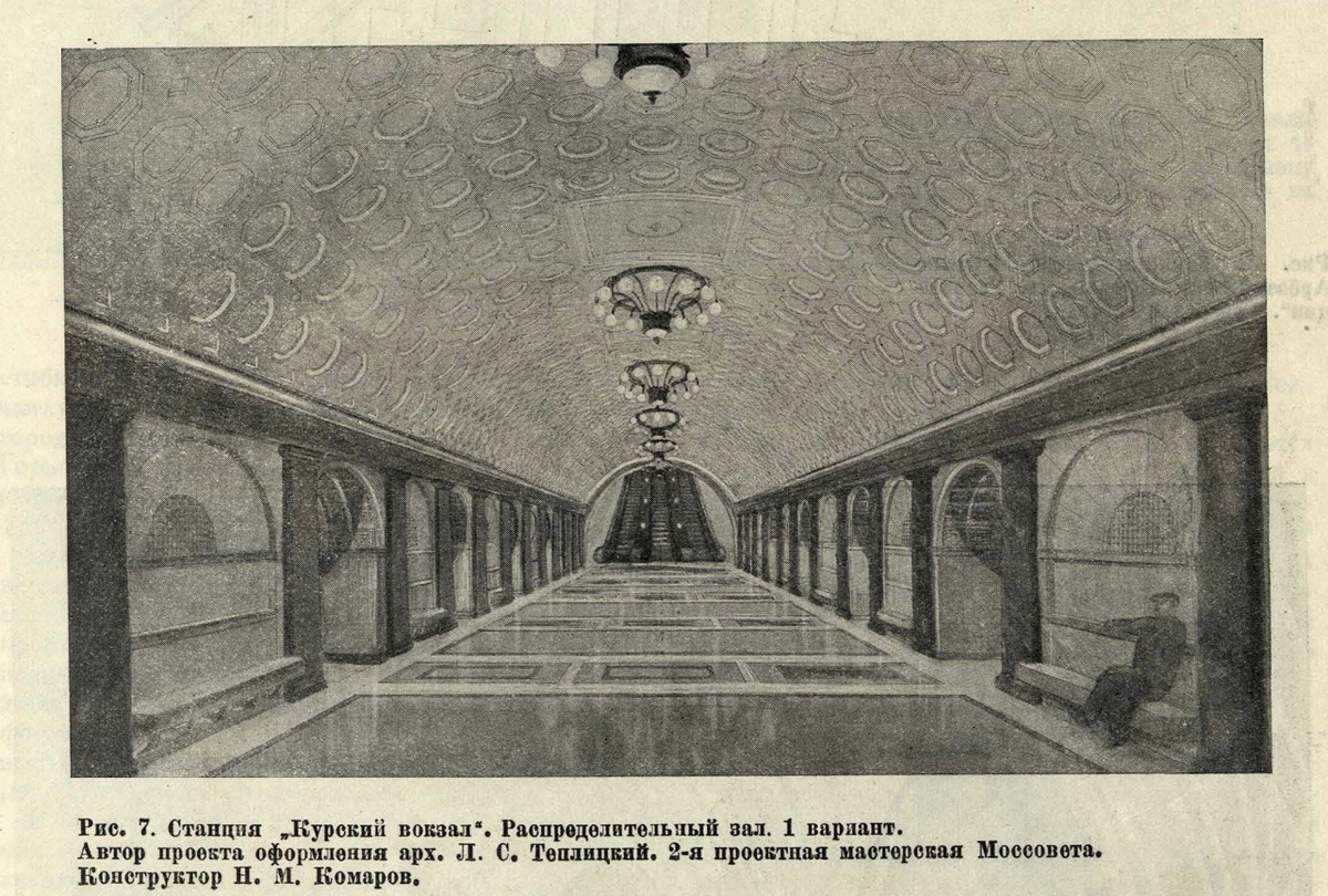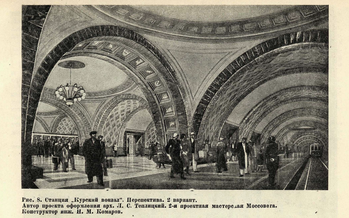 Проект станции "Курская" от Леонида Теплицкого (первый вариант). Из журнала "Строительство Москвы" за 1935 год (№13-14).