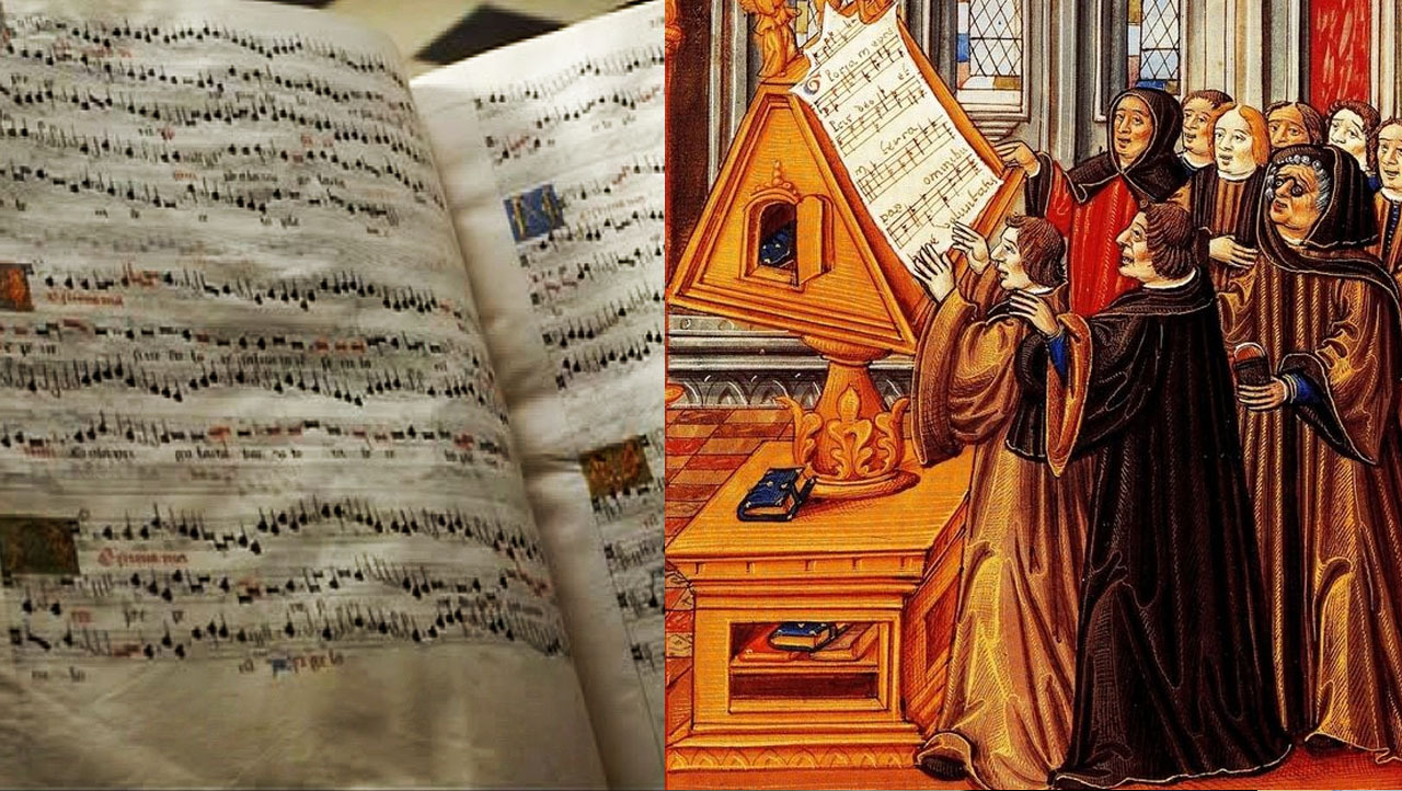И, конечно, требовалось множество профессионалов - священников, музыкантов, певчих и т.д... Все они путешествовали вместе с войском, сопровождаемые обозами с хоругвями, одеянием, реликвиями и огромными партитурами. Почему огромными? Ну, книгопечатания не было, и весь хор пользовался одной большой книгой с крупными музыкальными символами - чтобы всем было видно.