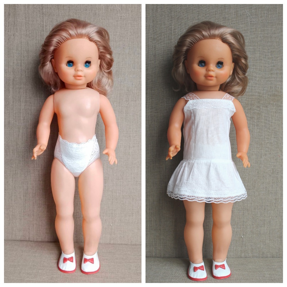 Фигурка у куколки - загляденье! Сшила ей кружевные трусики и нижнюю сорочку из батиста; туфельки из натуральной кожи.