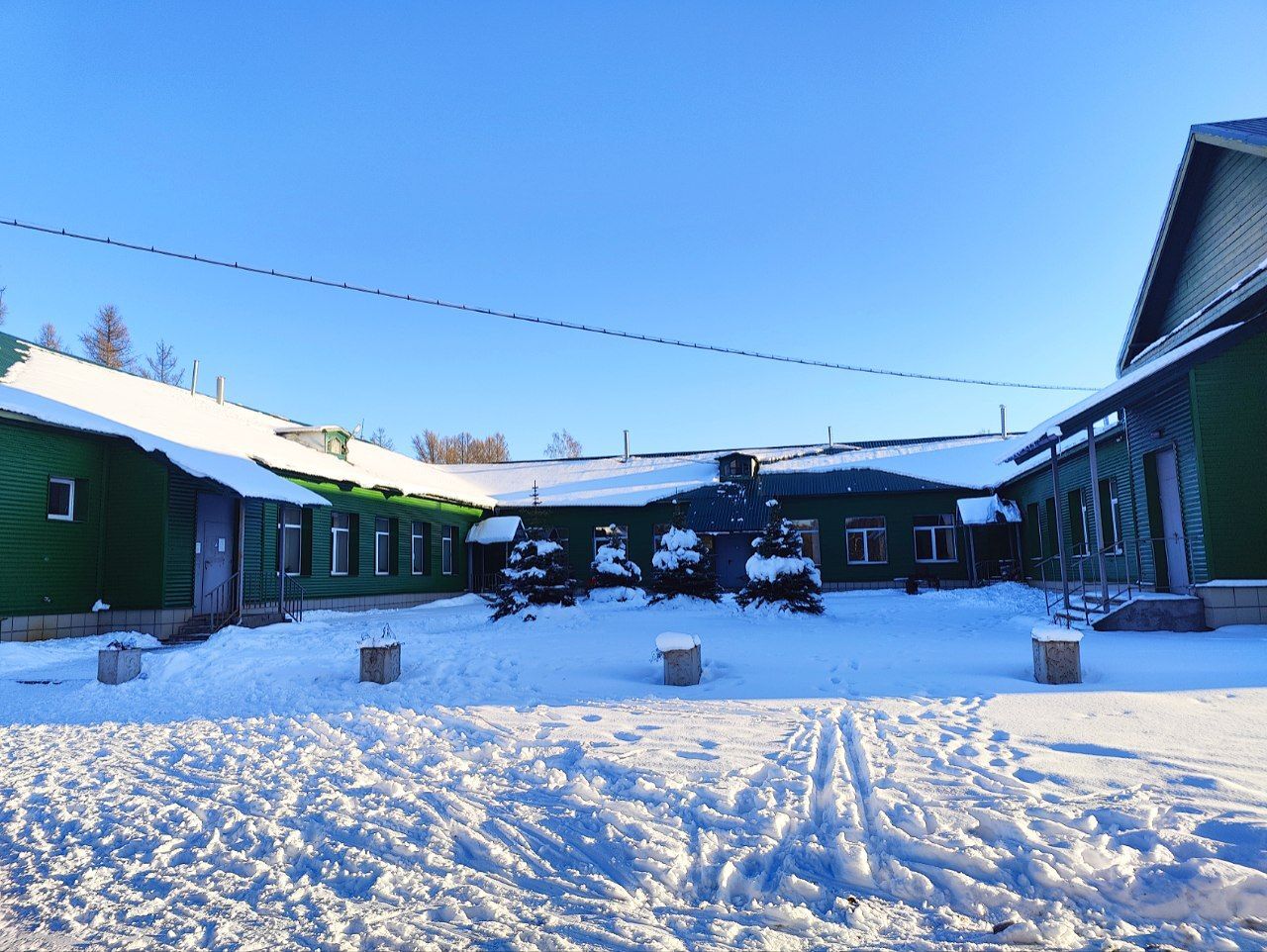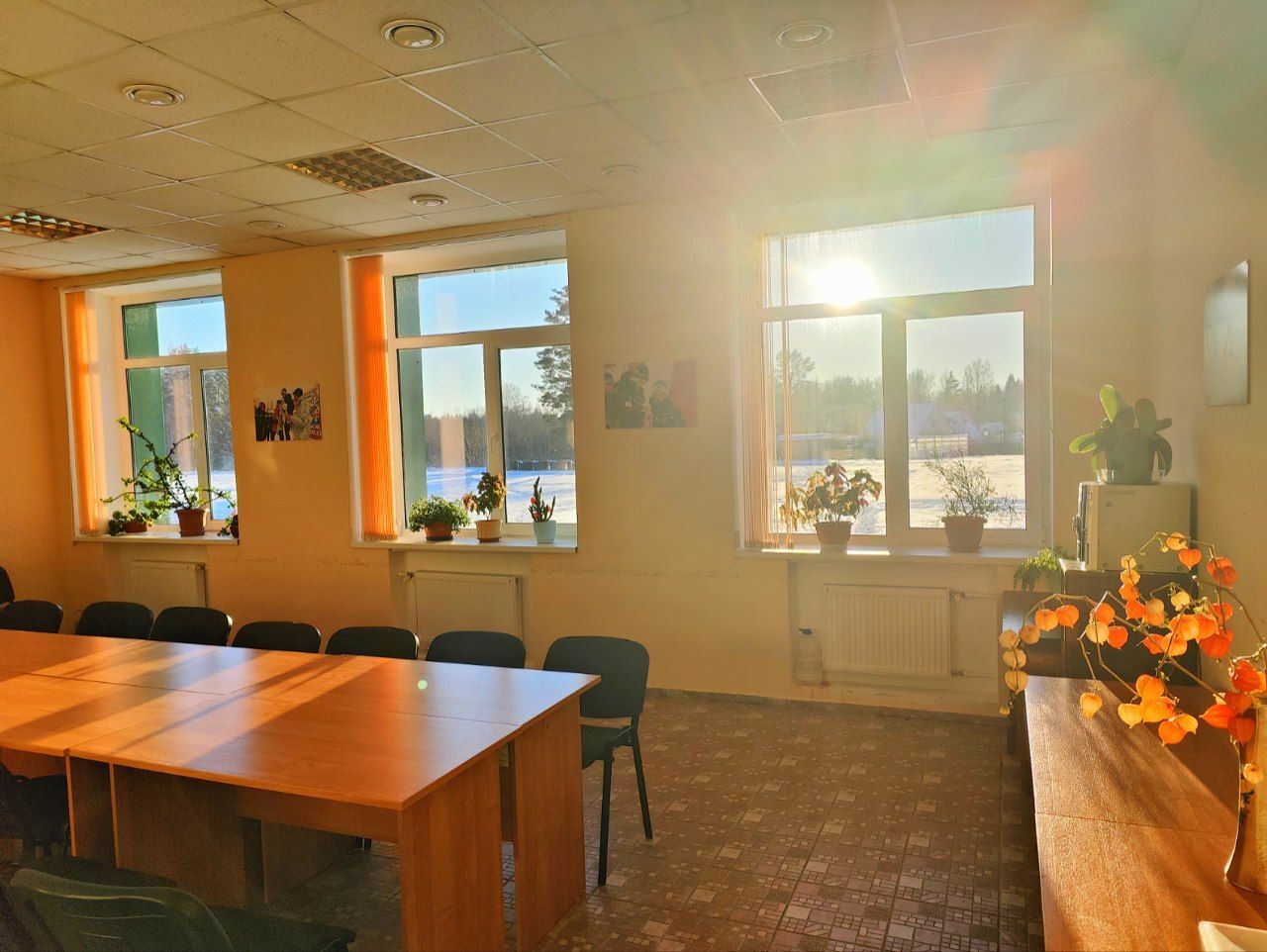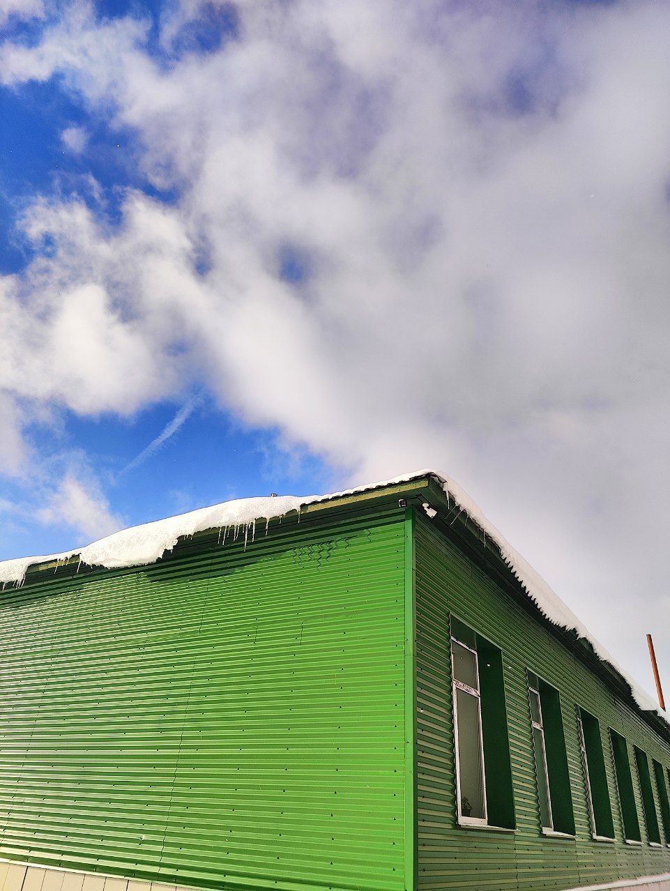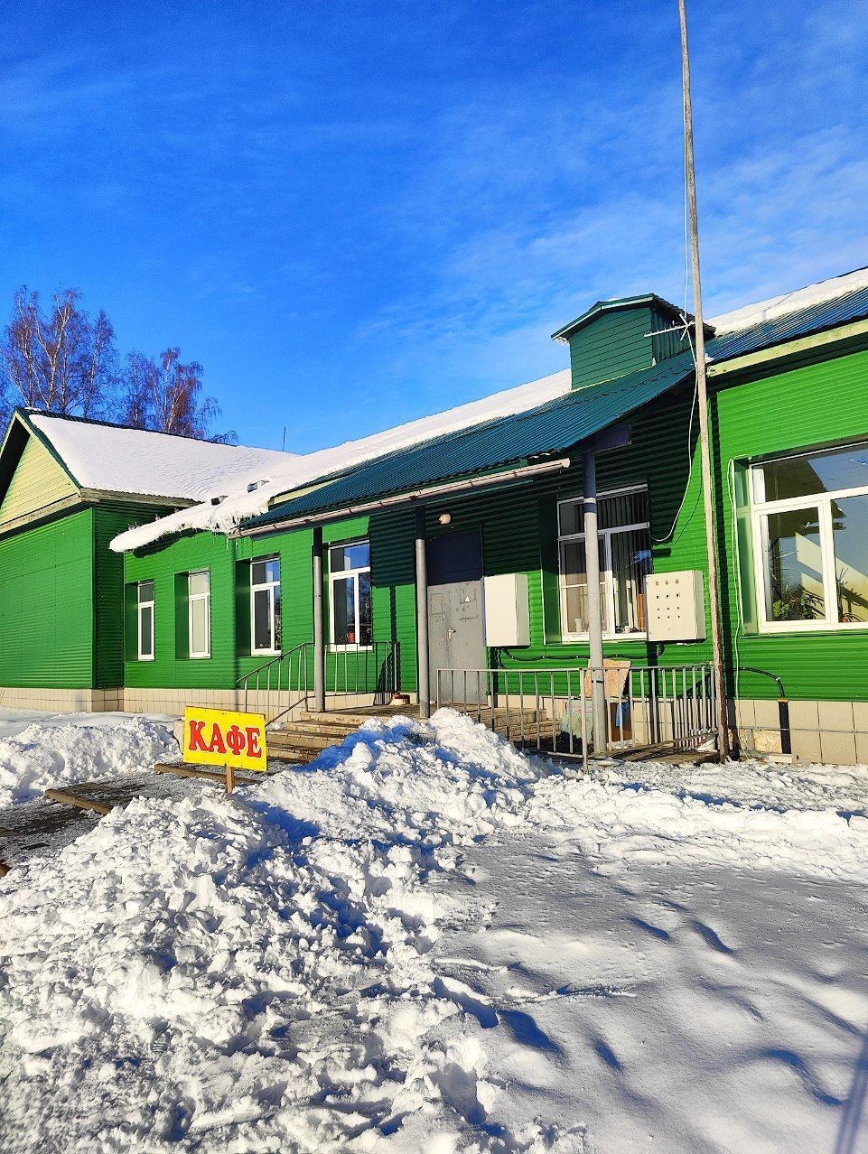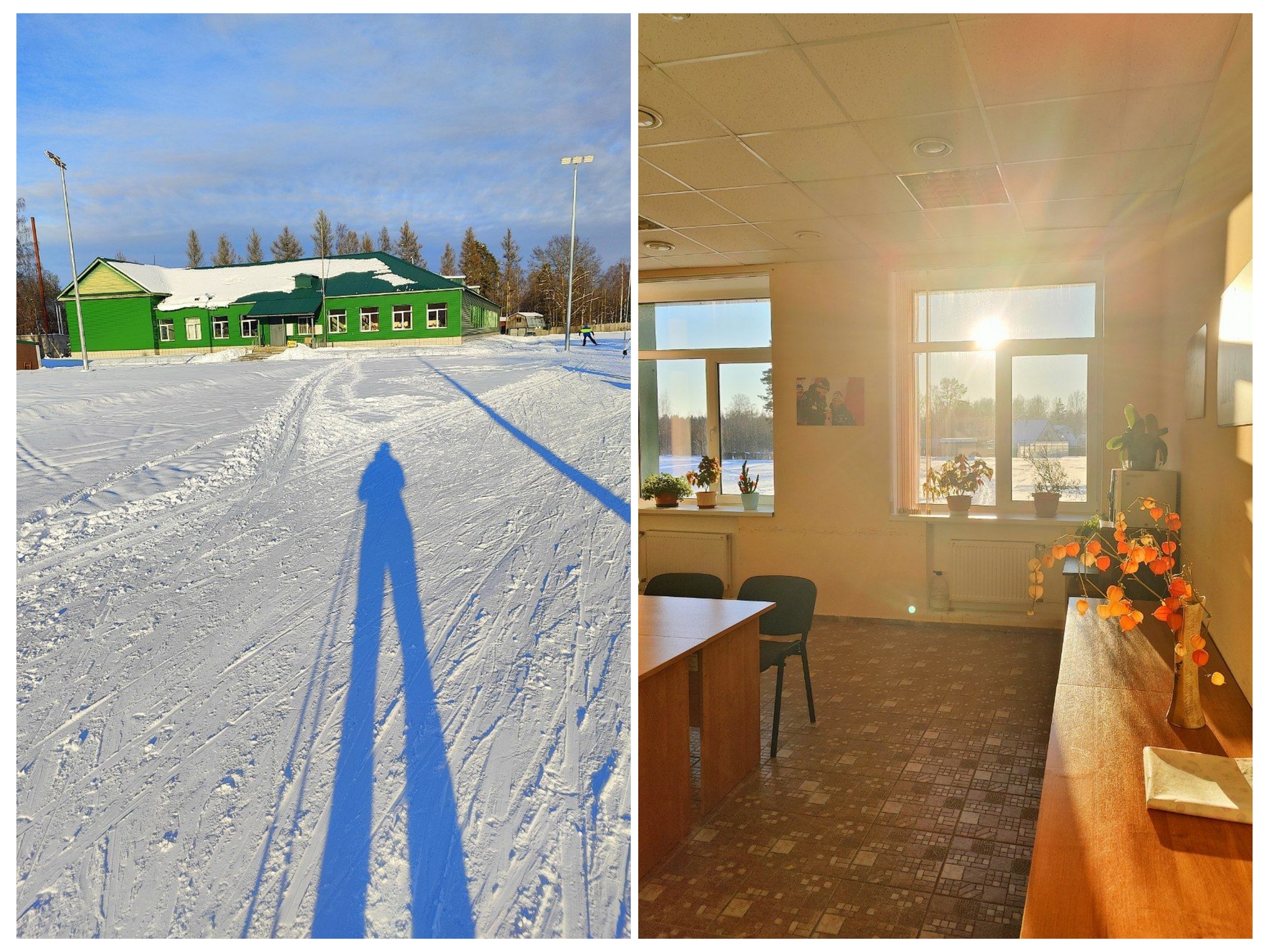 Старая советская школа (теперь лыжная база) в деревне Шапки (ЛО) + буфет