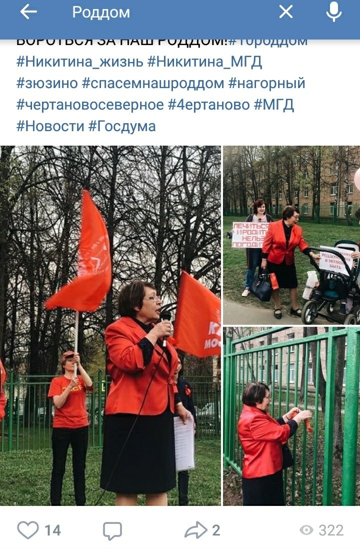 Якобы учителка отзывается на кличку Любовь Никитина, кандидат в депутаты от КПРФ. Логика защиты роддома у нее проста: ЭТО ПАМЯТЬ, Я ТАМ ДВА РАЗА РОЖАЛА. Но это событие, которым она явно гордится так, что хочет себе оставить памятник в виде роддома, было 10000000 лет назад и тогда это здание было новым.