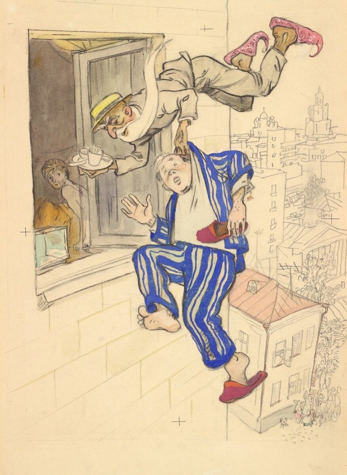 У Энсти же джин поступает скорее в стиле булгаковского Воланда, повелевающего пространством - он неведомым образом "расширяет" небольшую лондонскую квартиру архитектора до роскошных многозальных покоев.