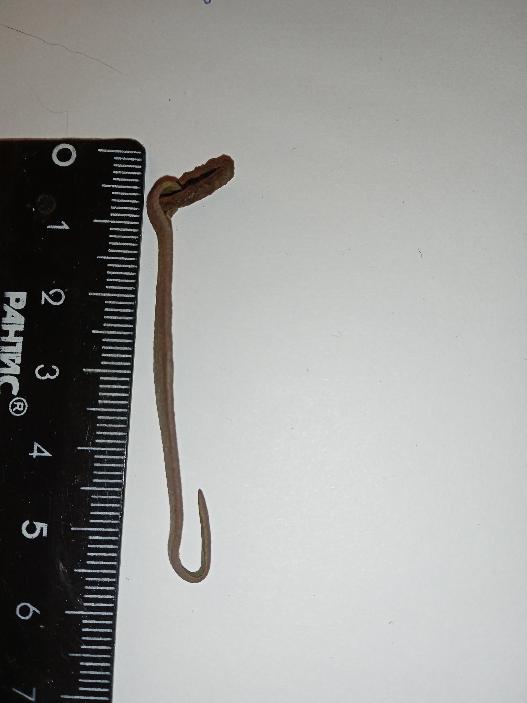 Всём привет. Сегодня ловил крупных щук, они кстати не пострадали, и решил пройтись с мд по лесочку у берега. Нашёл приятную вещицу-старинная блесна. Жало без бородки. В нете пишут, что такие делали раньше, чтобы рыбу снимать быстрее. И форма то классическая-ромб. Окуневая. Осталось восстановить и разловить. Какой век не скажу, но думаю 18-19. Вроде латунь, или медь, я ещё пока не разбираюсь, колечко железное.