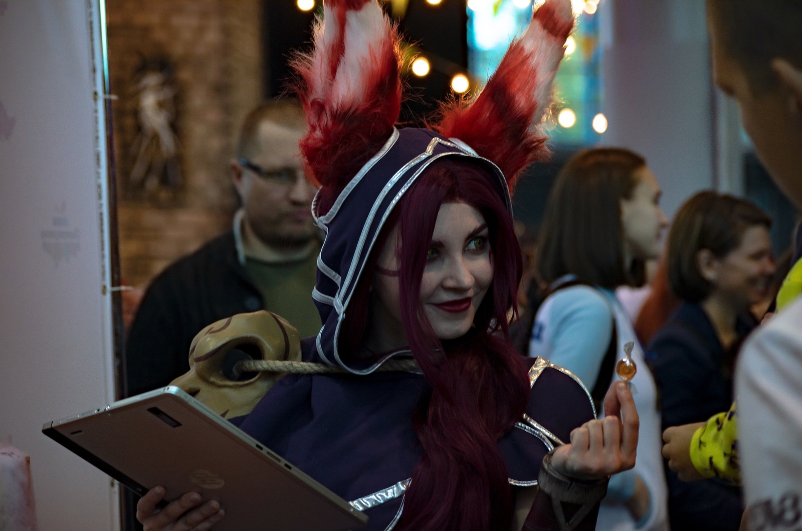 А мне на этом фестивале довелось не только выступить в роли косплеера, но еще и поработать, мы с подругами в лучших традициях Хэллоуина угощали посетителей фестиваля сладостями от фабрики "Красный Октябрь". Я сама была в Лилиане Весс из MTG и было чертовски приятно, когда узнавали персонажа и задумывались - стоит ли брать конфеты у некроманта? ))