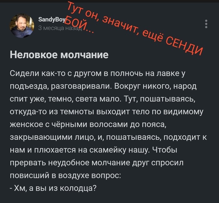 Поэтому он старается всеми силами закрыться ото всех моложавым ником, "СЕНДИ БОЙ", песочный мальчик...