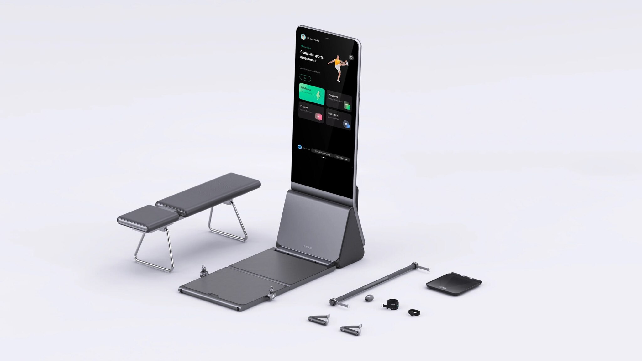 AEKE K1 , представляет собой более многофункциональную систему — компактный "умный домашний спортзал" с ИИ-тренером, который не требует подписки .
