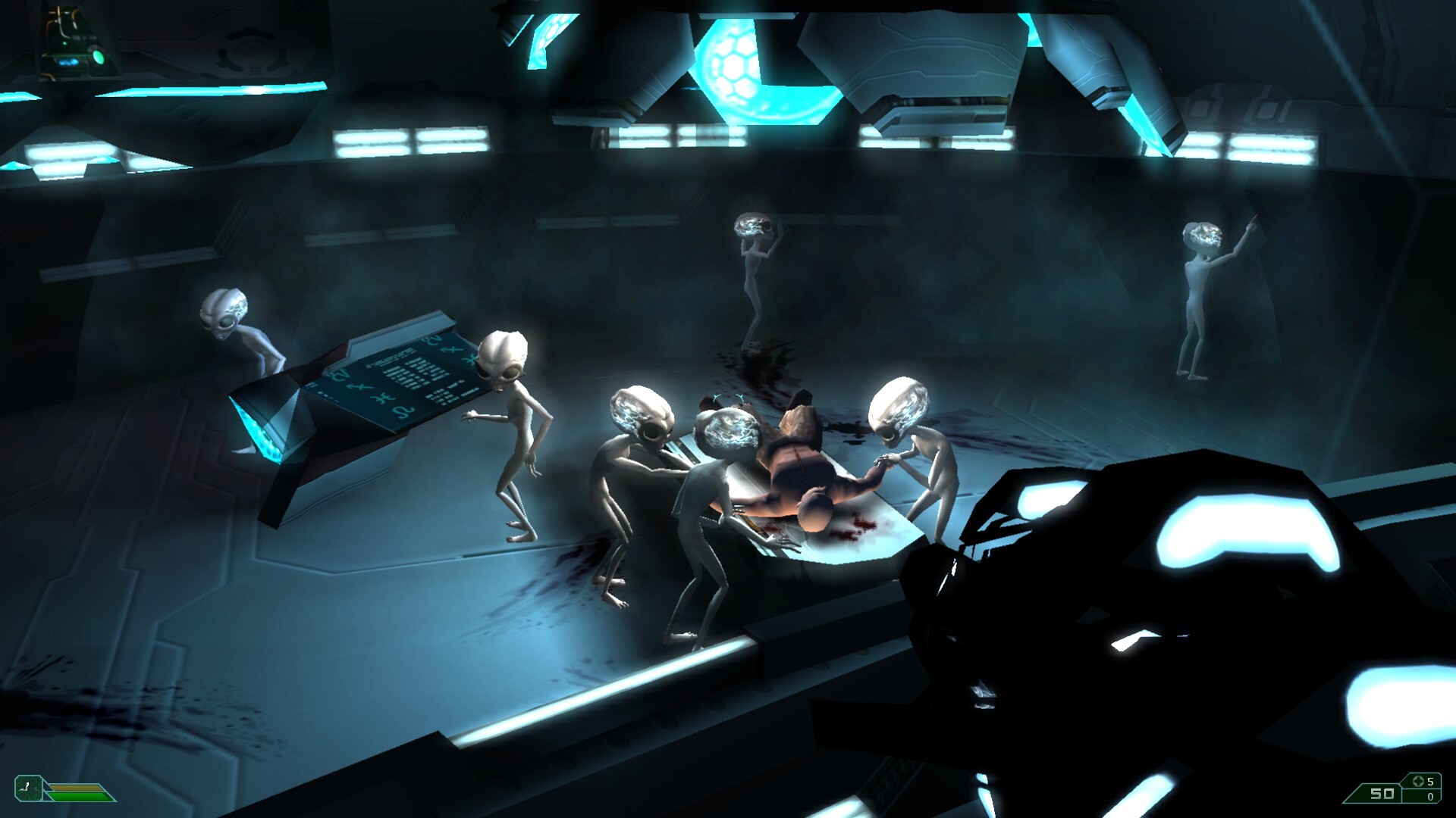 Зато как сюжетное приключение игра уже интереснее. Здесь был потенциал: тема заражения, мутирующего человека, иллюминаты, серые, паранойя и заговор — всё вроде бы на месте. И действительно, кое-где проскальзывают вопросы: где заканчивается человек и начинается монстр? Но, к сожалению, на деле мы просто перестреливаемся с двумя типами противников — заражёнными и войсками иллюминатов. А пришельцы в конце появляются лишь для того, чтобы... призвать ещё больше иллюминатов.