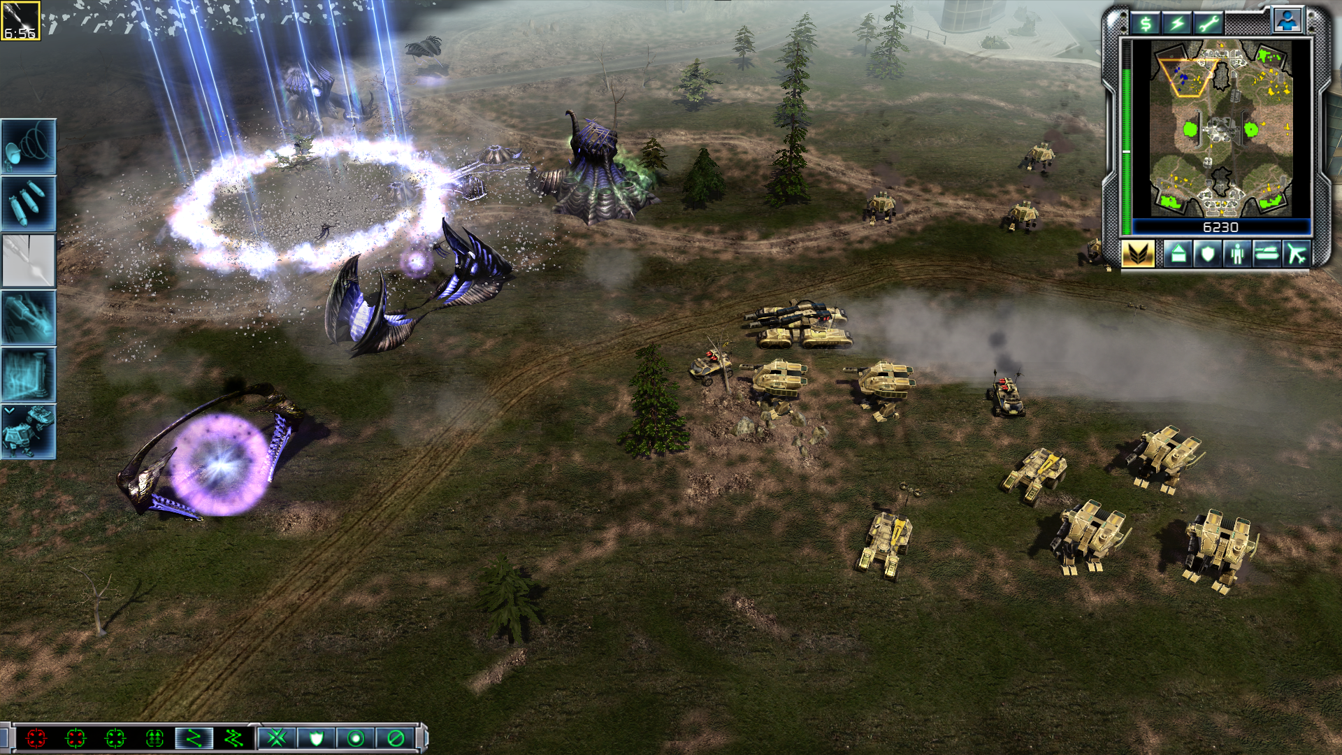 Юниты хорошо различимы на поле боя. Силуэты читаются быстро — у GDI массивная техника, у Nod более изящная и хищная, у Скринов вообще всё инопланетное и не до конца понятное глазу. В RTS это критично, и игра с этим справляется.