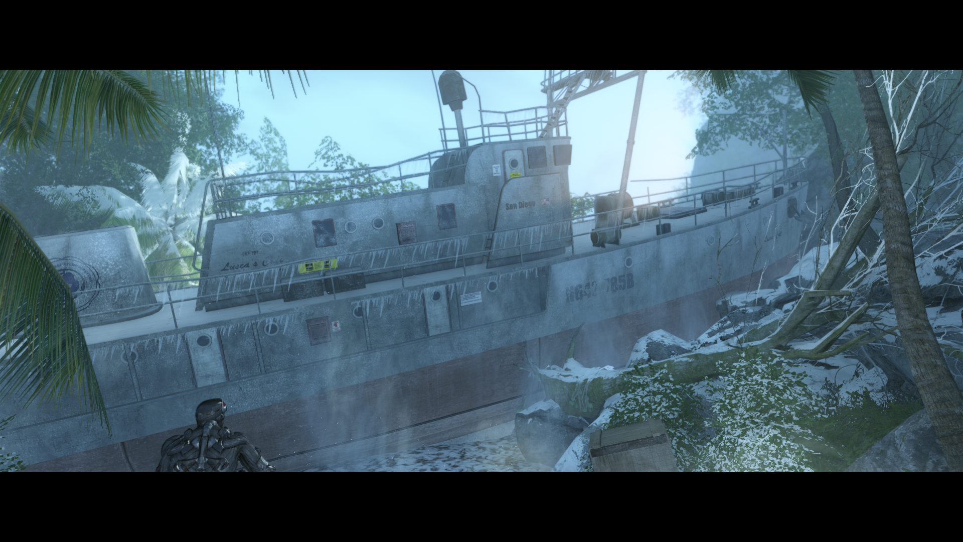 Но самое сильное впечатление производит не само знакомство с ними, а то, что происходит после. Выбравшись из их зоны влияния, игрок становится свидетелем агрессивного терраформинга: пришельцы начинают буквально замораживать всё вокруг. Тропический остров за считанные минуты превращается в ледяной кошмар — мир, в котором выжить может только тот, кто облачён в нанокостюм.